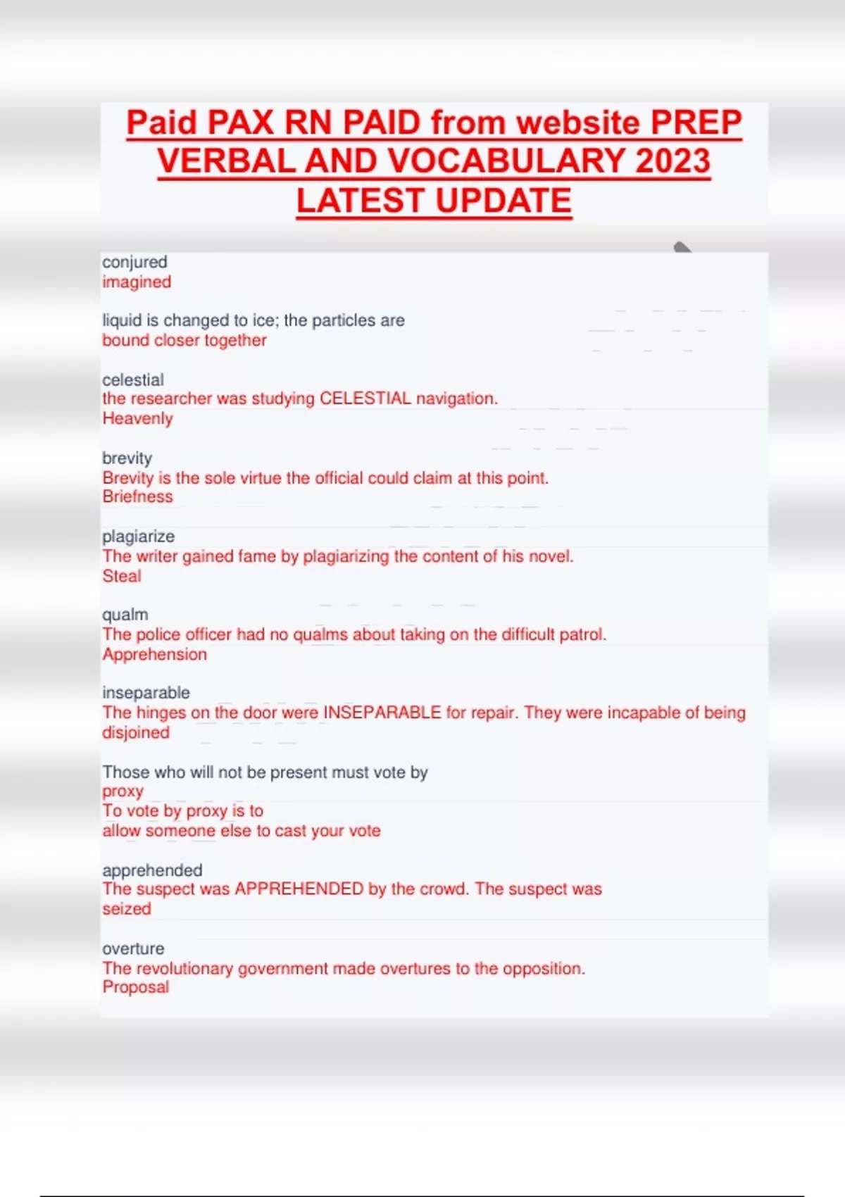 Paid PAX RN PAID from website PREP VERBAL AND VOCABULARY 2023 LATEST UPDATE