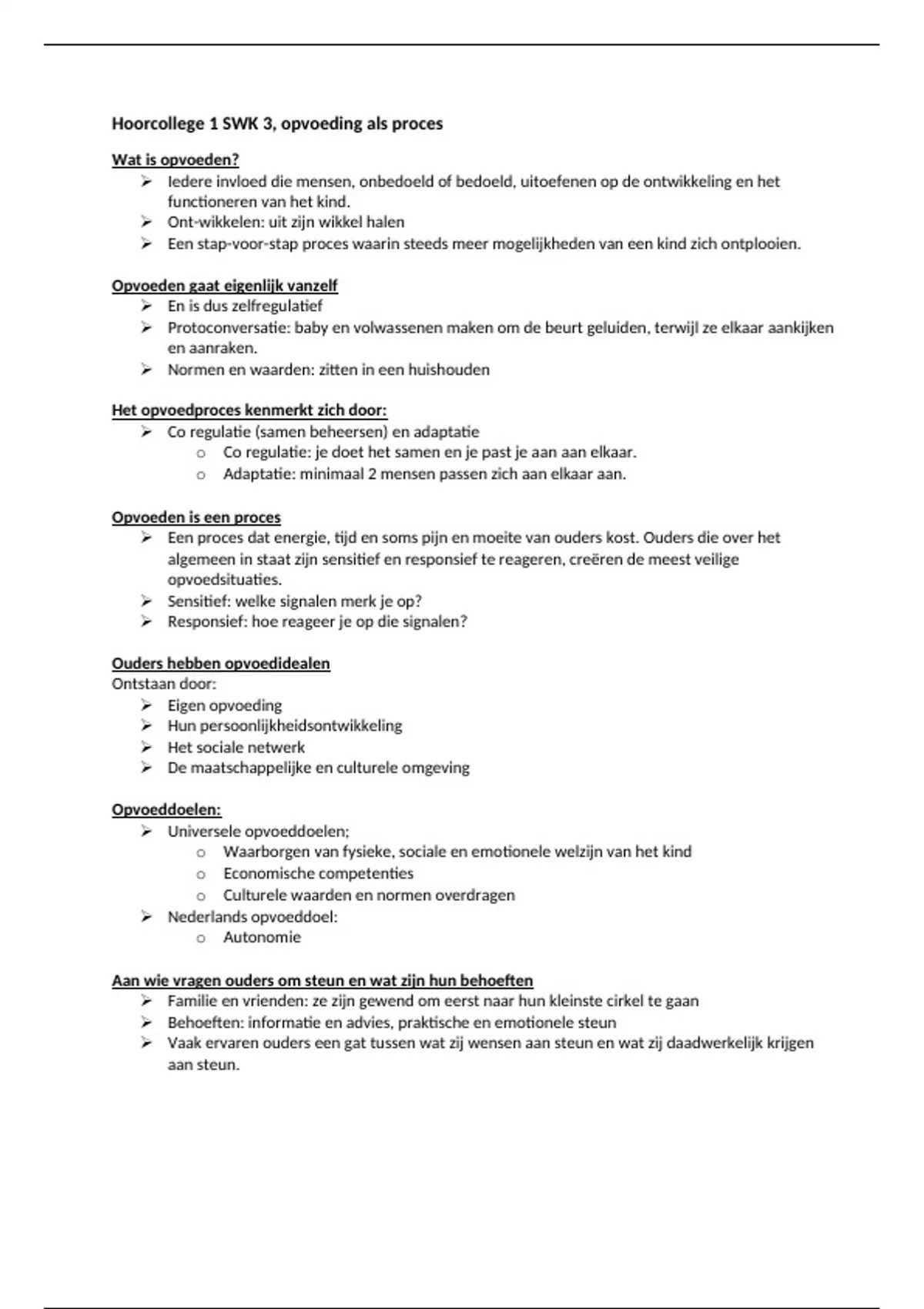 Hoorcollege 1 SWK 3, opvoeding als proces
