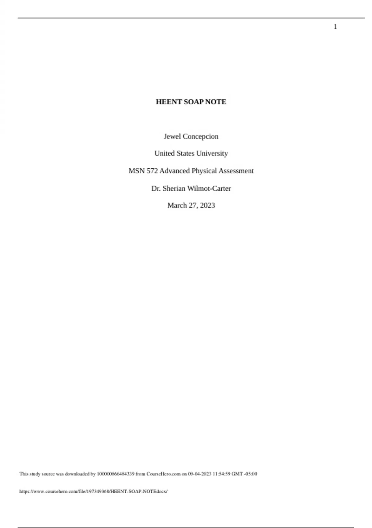HEENT SOAP NOTE with complete solution HEENT SOAP NOTE Jewel Concepcion United States University MSN 572 Advanced Physical Assessment Dr. Sherian Wilmot-Carter March 27, 2023