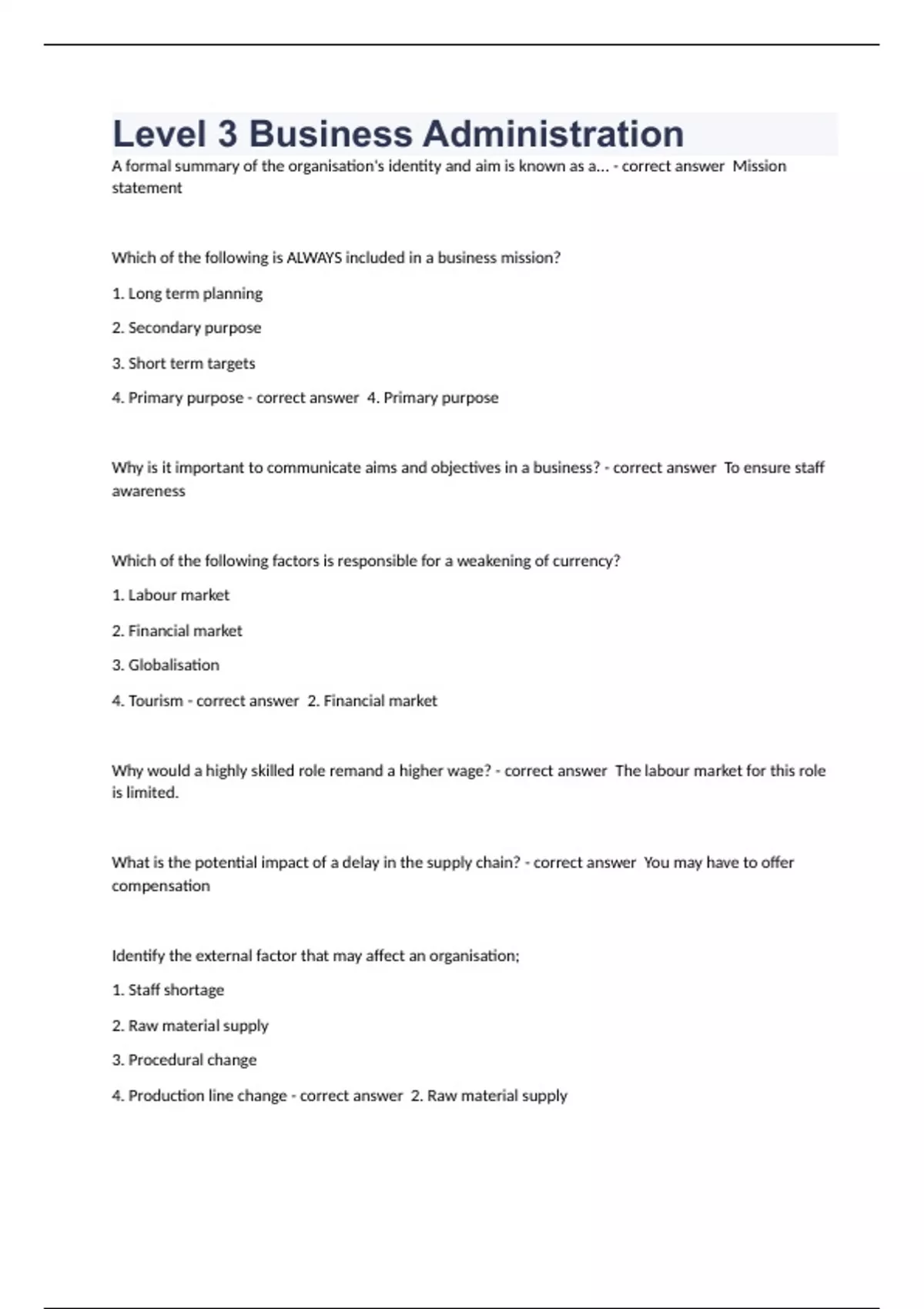 - Level 3 Business Administration