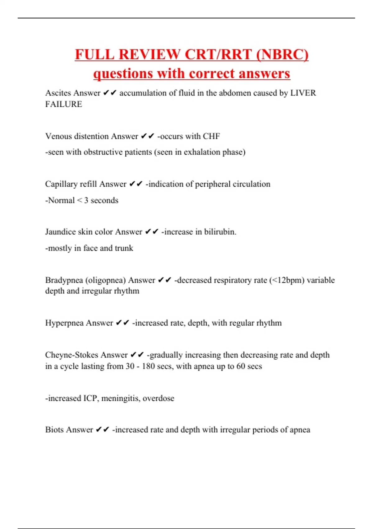 FULL REVIEW CRT/RRT (NBRC) questions with correct answers