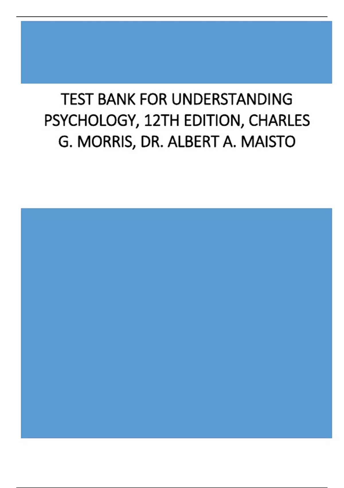 Test Bank for Understanding Psychology, 12th Edition, Charles G. Morris, Dr. Albert A. Maisto