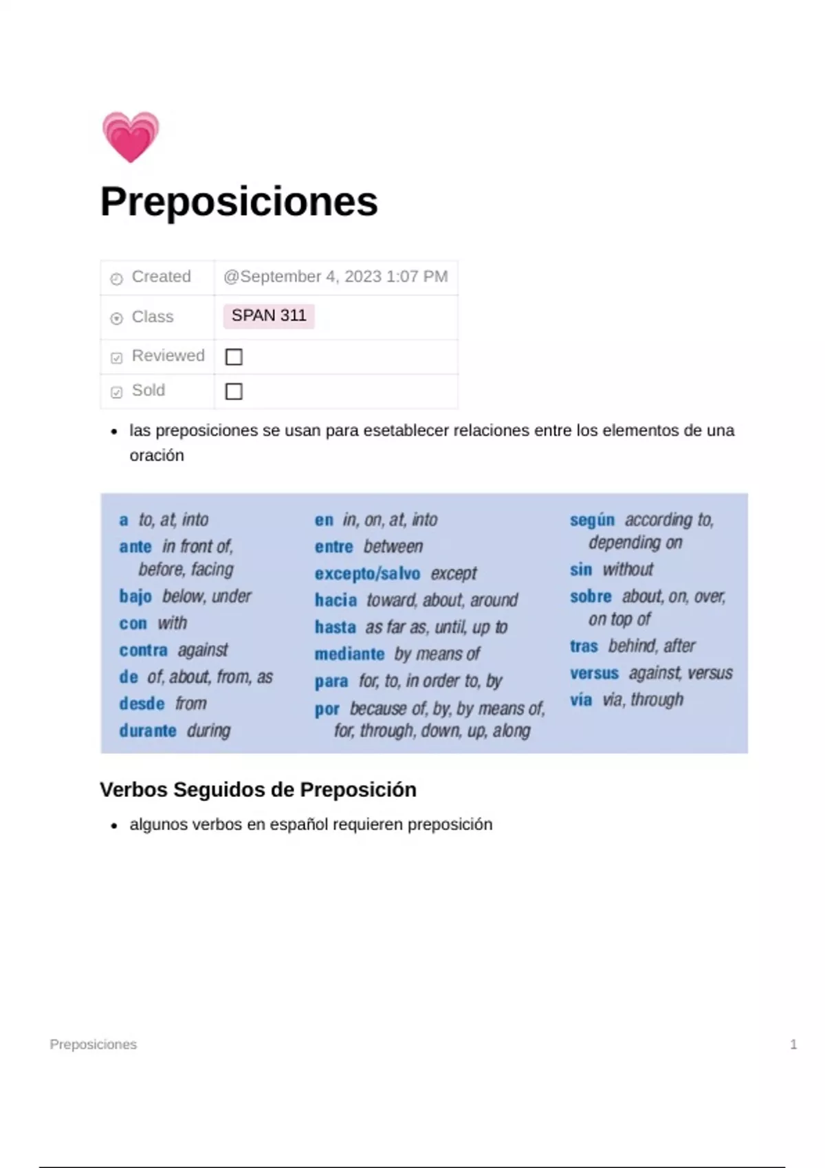 Textbook note on Prepositions (Revista sixth edition on VHL)