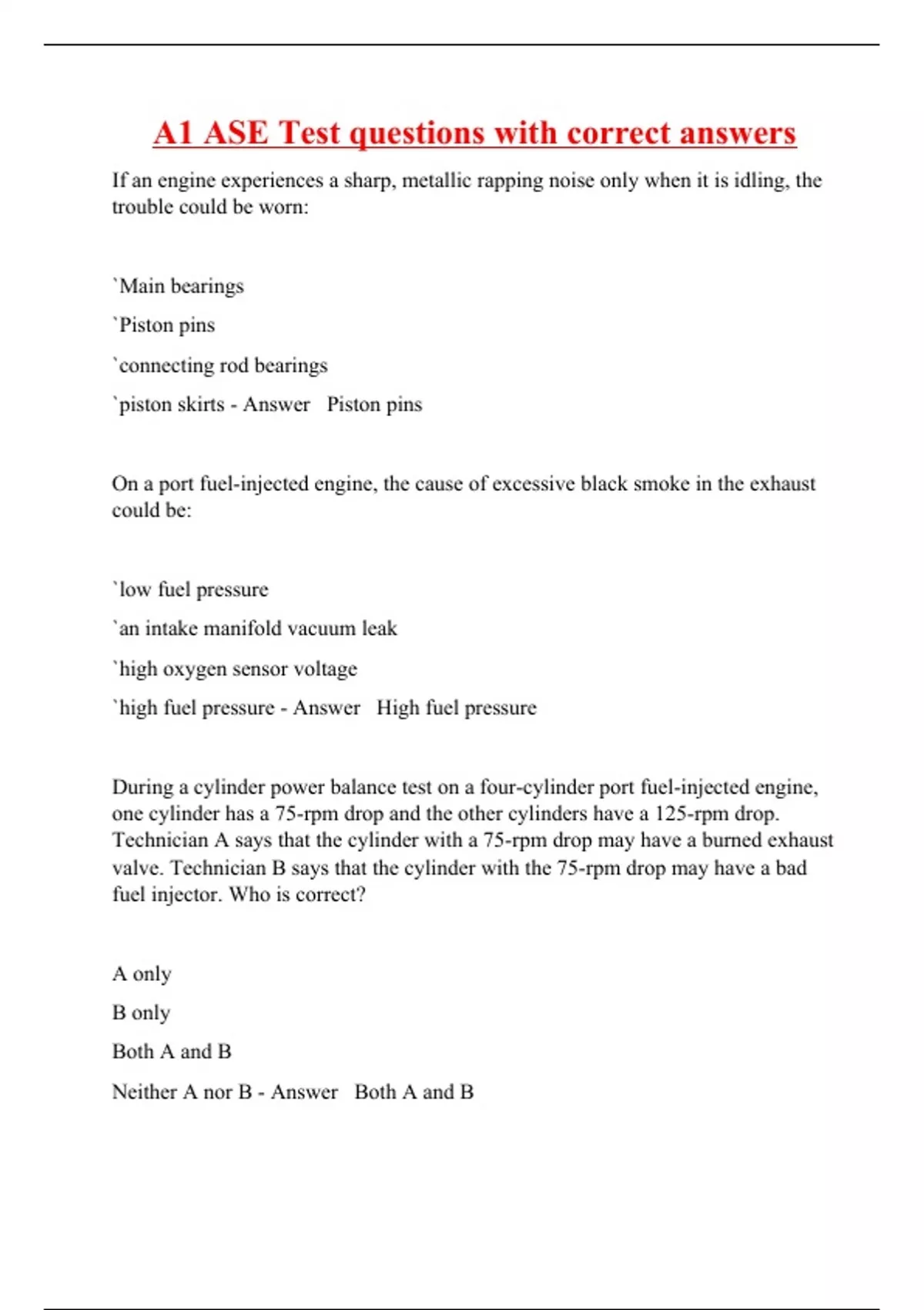 A1 ASE Test questions with correct answers