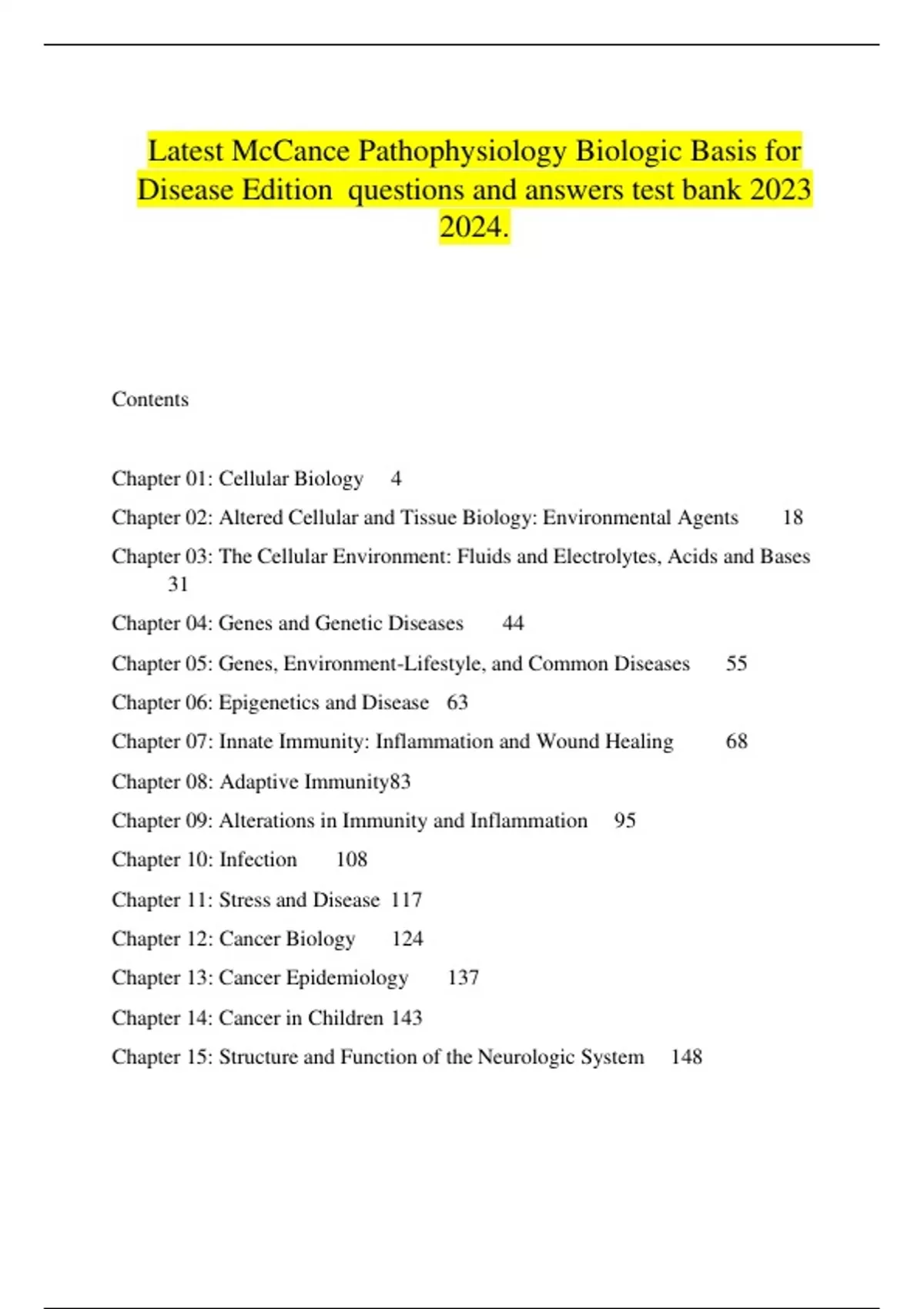 Latest McCance Pathophysiology Biologic Basis for Disease 8th Edition questions and answers test bank .