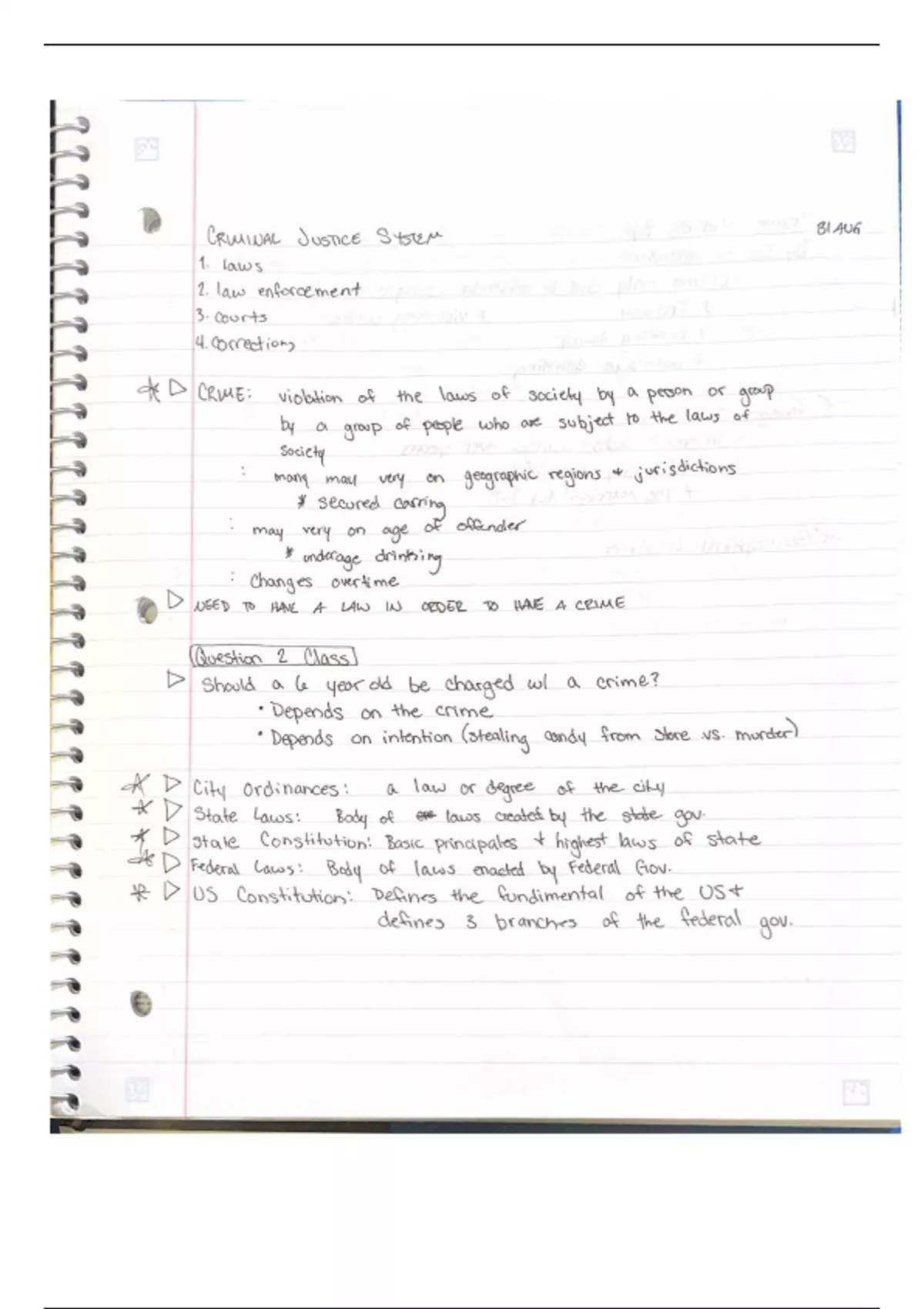 Class notes and Class Discussion Questions