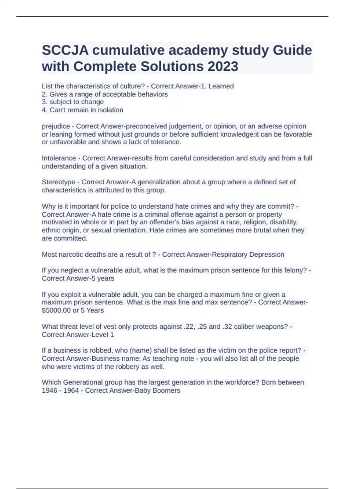 SCCJA cumulative academy study Guide with Complete Solutions 2023
