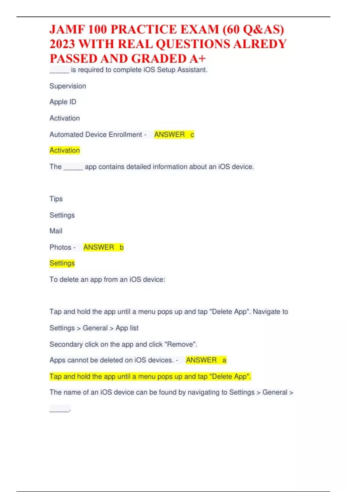 JAMF 100 PRACTICE EXAM (60 Q&AS) 2023 WITH REAL QUESTIONS ALREDY PASSED AND GRADED A+