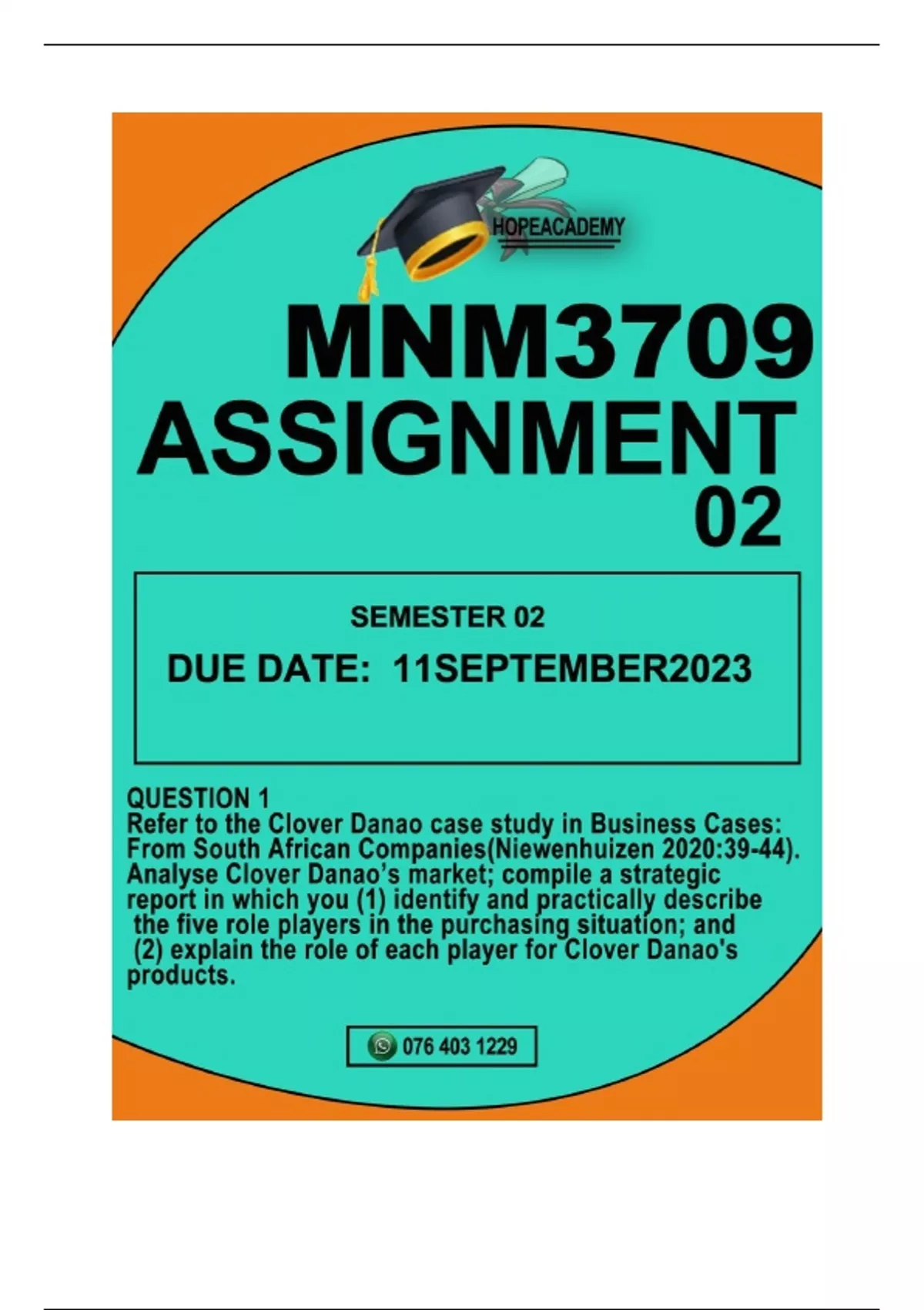 MNM3709 ASSIGNMENT02 SEMESTER 02 DUE11 SEPTEMBER2023