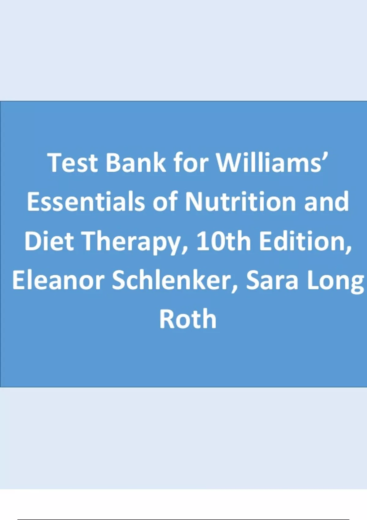 Test Bank for Williams’ Essentials of Nutrition and Diet Therapy, 10th Edition, Eleanor Schlenker, Sara Long Roth