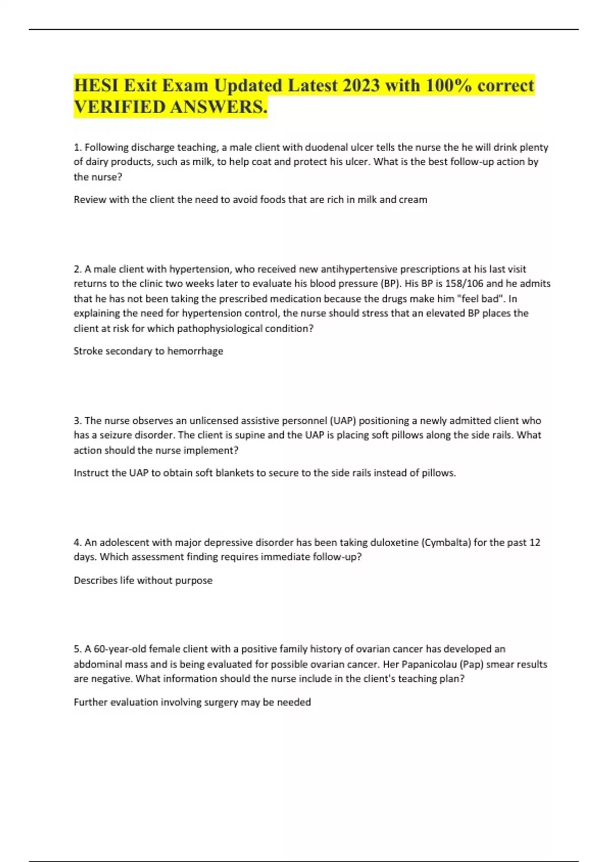 HESI Exit Exam Updated Latest 2023 with 100% correct VERIFIED ANSWERS