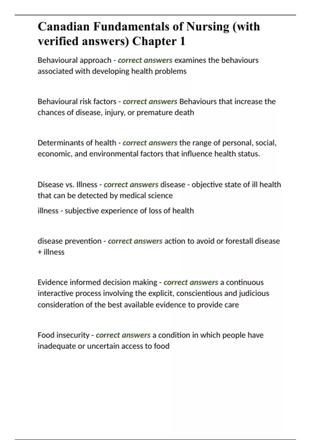 Canadian Fundamentals of Nursing (with verified answers) Chapter 1.docx