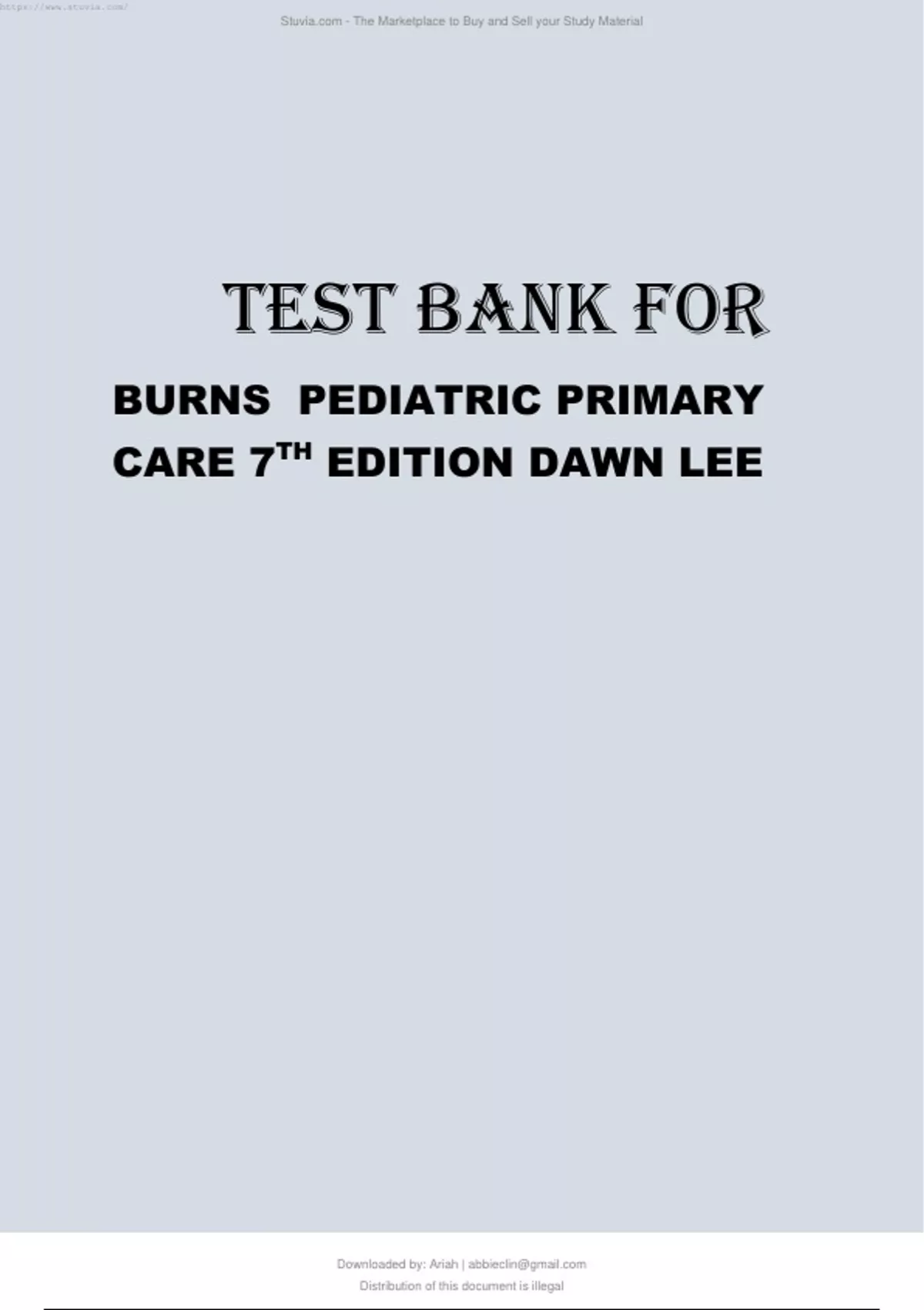 TEST BANK FOR BURNS PEDIATRIC PRIMARY CARE 7TH EDITION DAWN LEE.