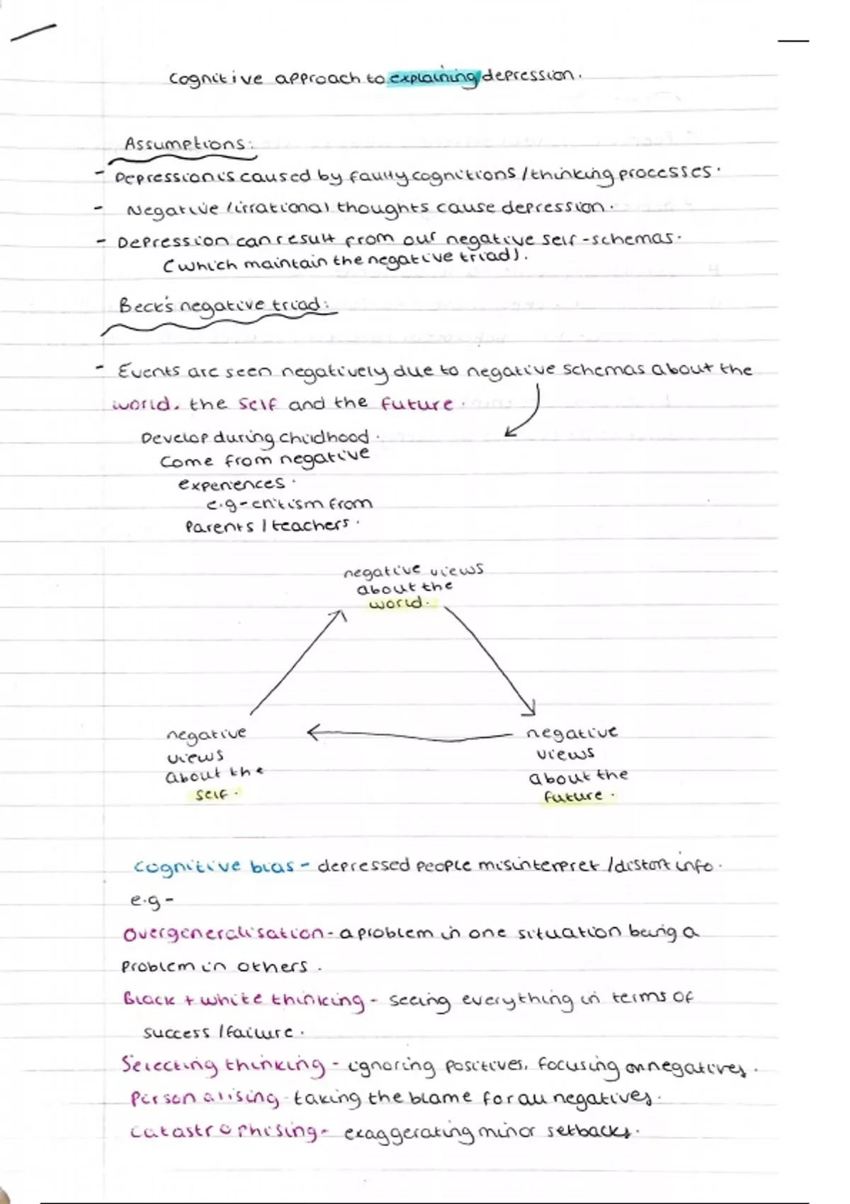 Summary notes- cognitive approach to explaining/treating depression