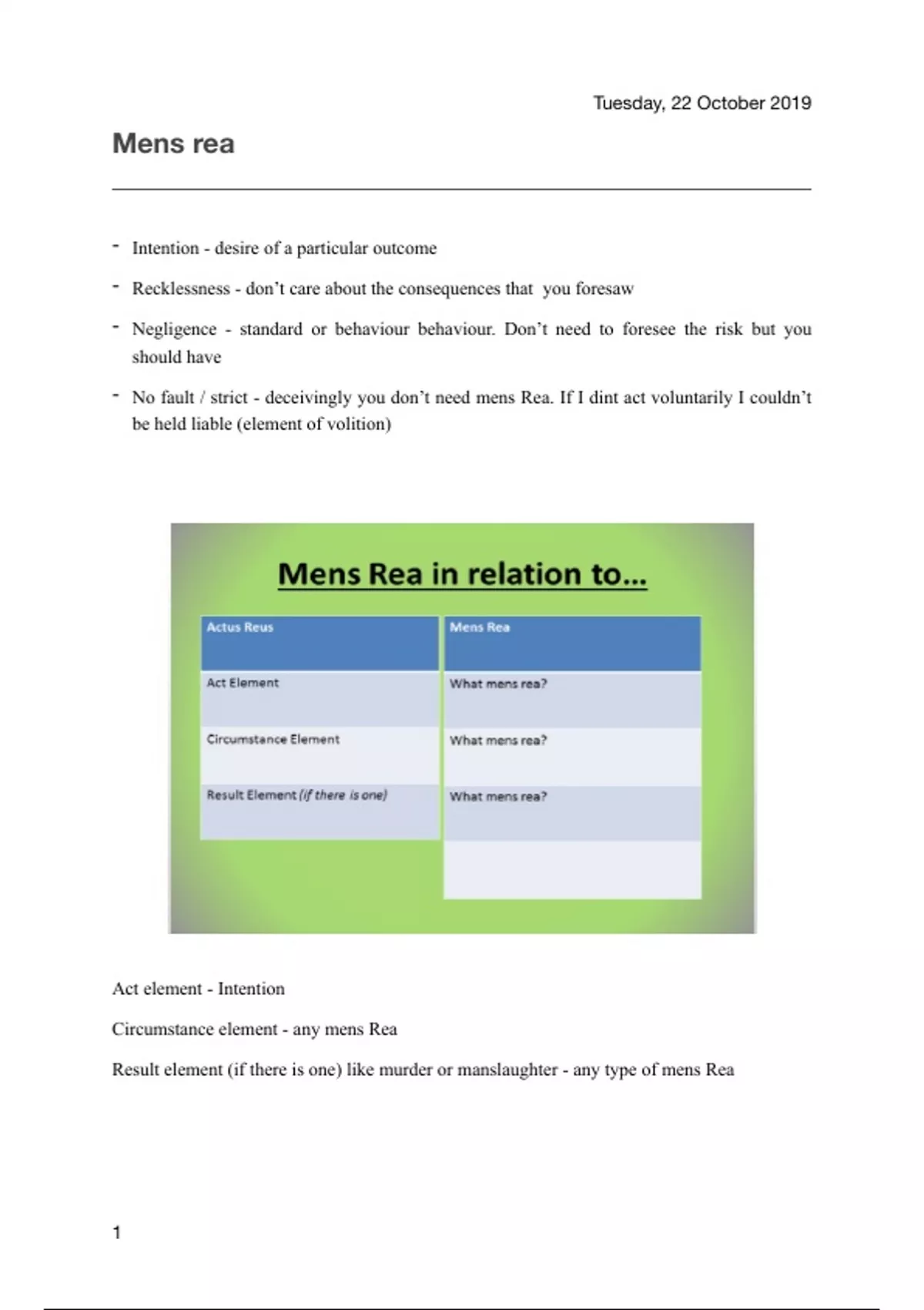 Act element - Intention
