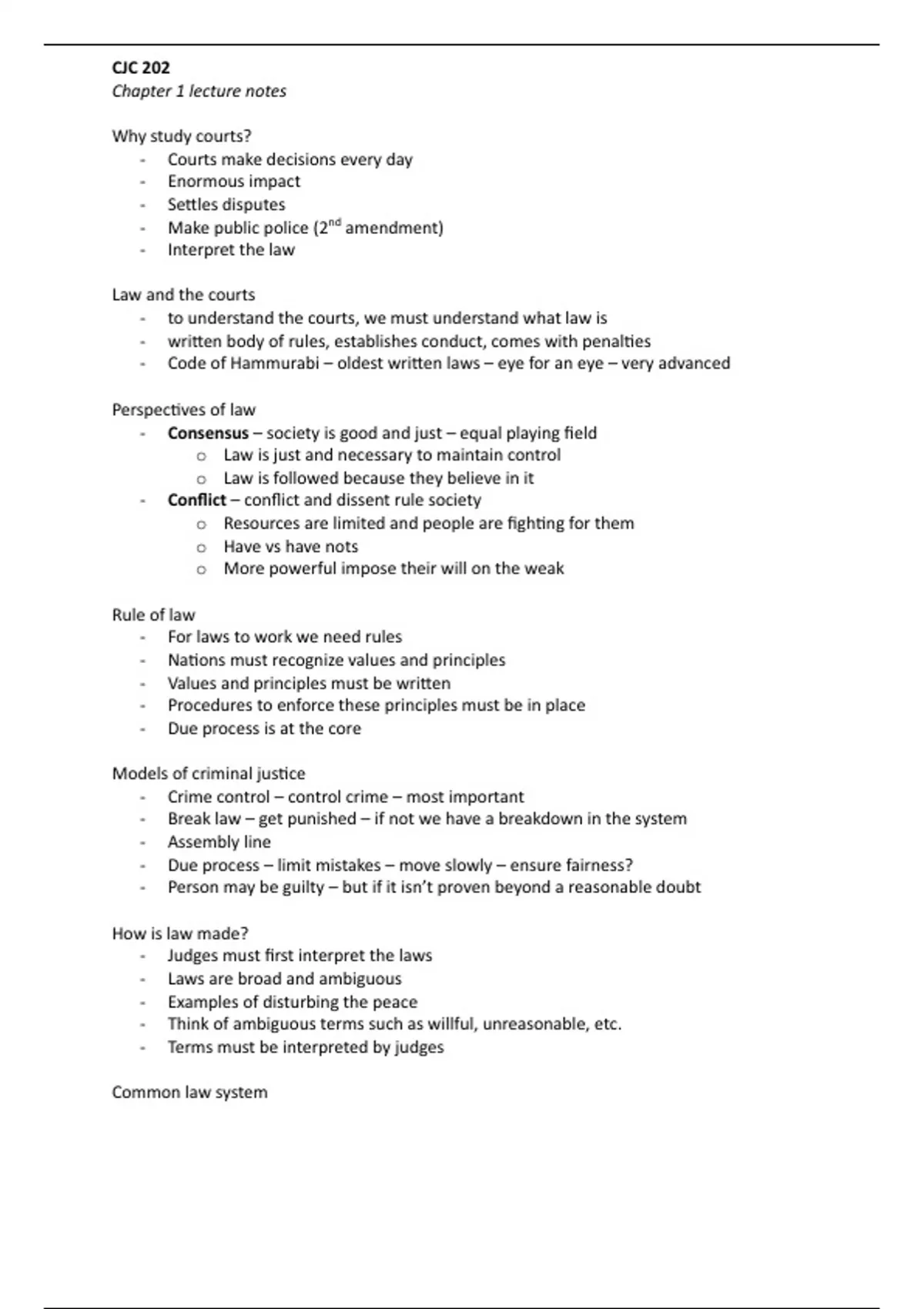 Class notes (CJC202) Criminal Courts 9/5-9/7