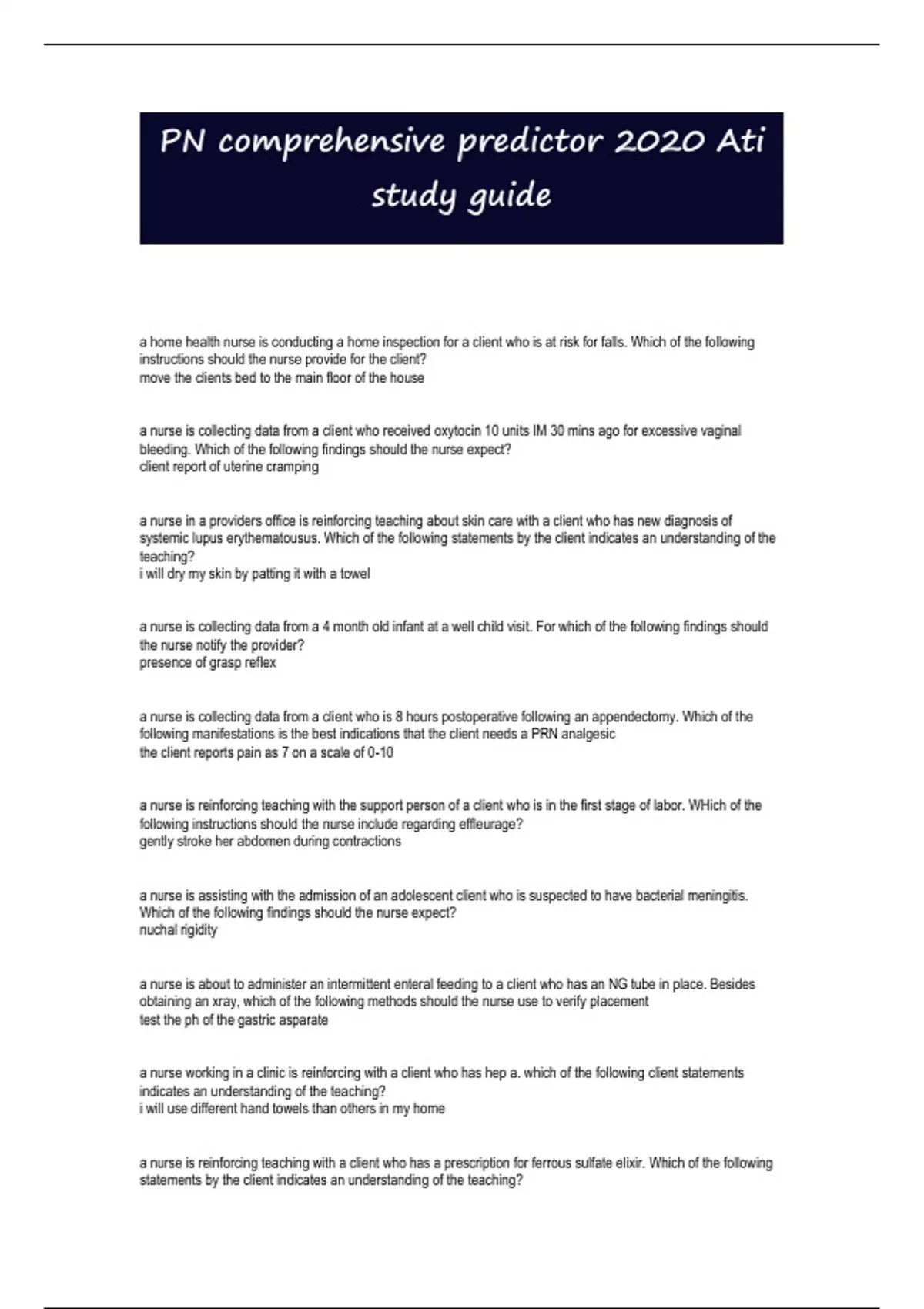 PN comprehensive predictor 2020 Ati study guide