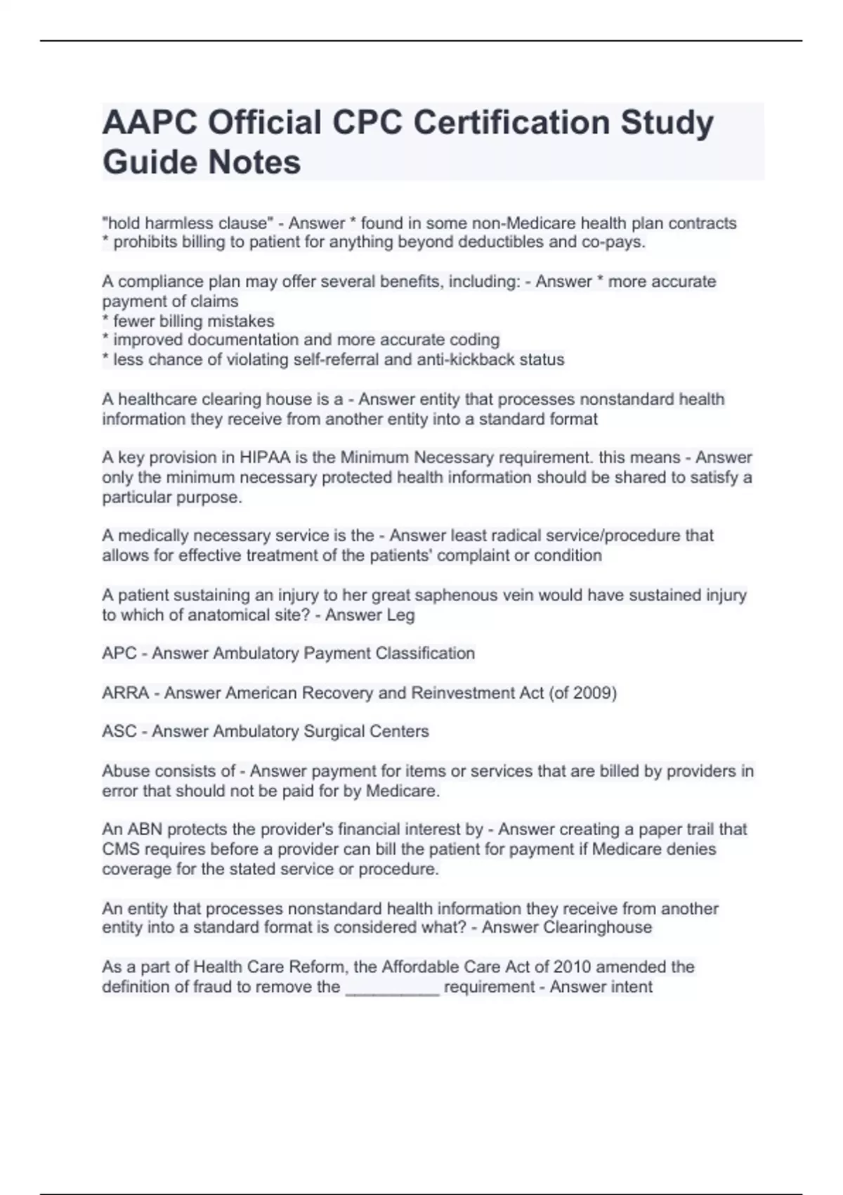 AAPC Official CPC Certification Study Guide Notes