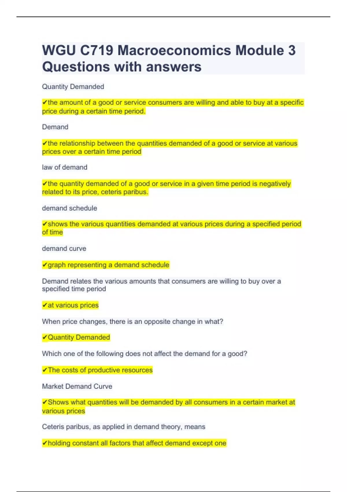 WGU C719 Macroeconomics Module 3 Questions with answers