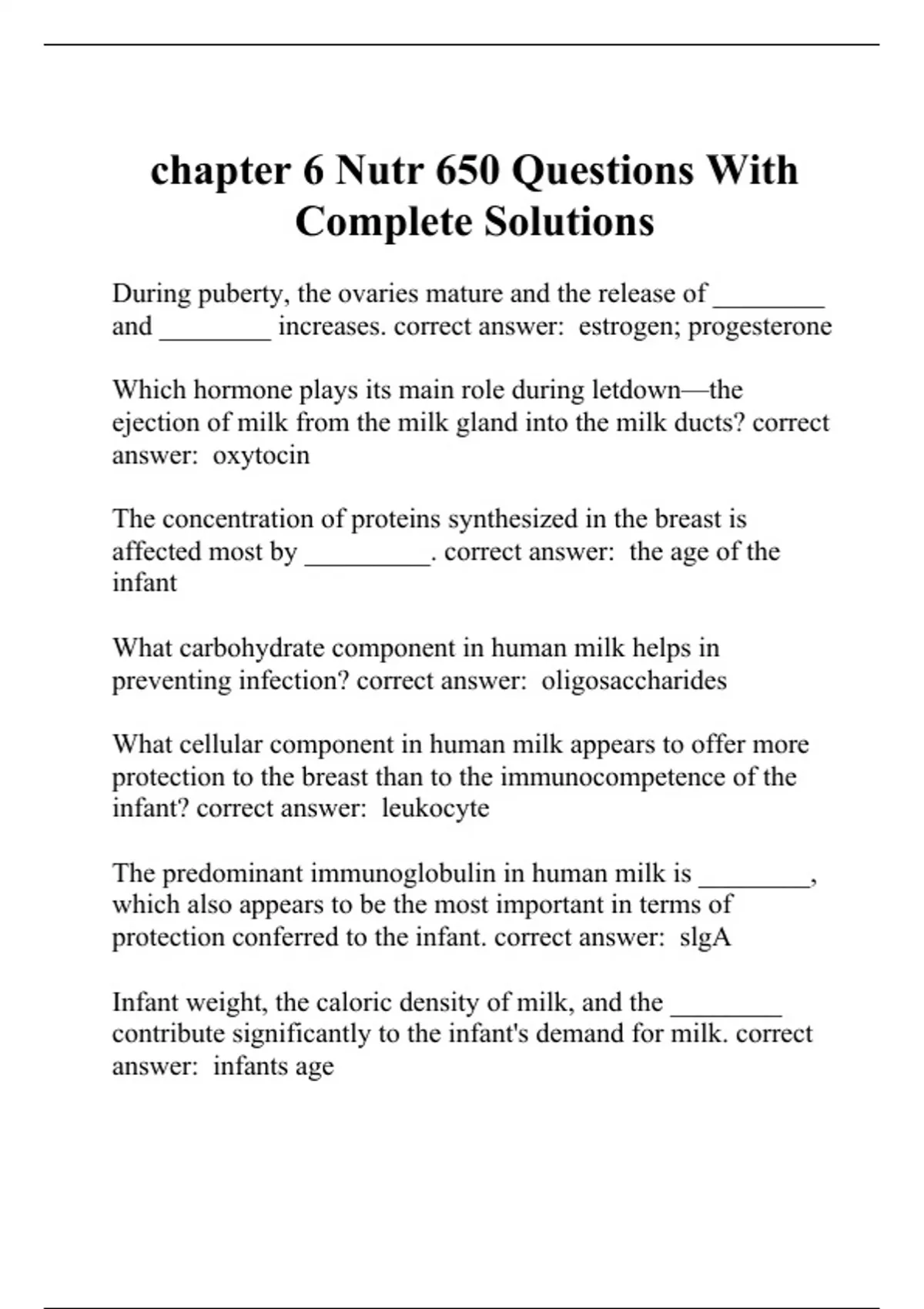 chapter 6 Nutr 650 Questions With Complete Solutions