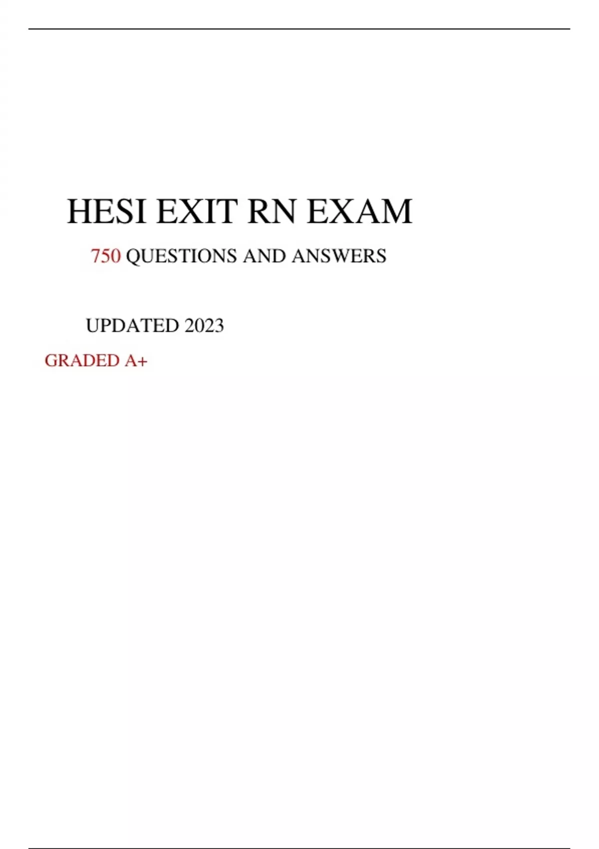 Hesi Exit Exam Review 2022/ 2023 rated A+ Hesi Exit Exam Review 2022/ 2023 rated A+ Hesi Exit Exam Review 2022/ 2023 rated A+