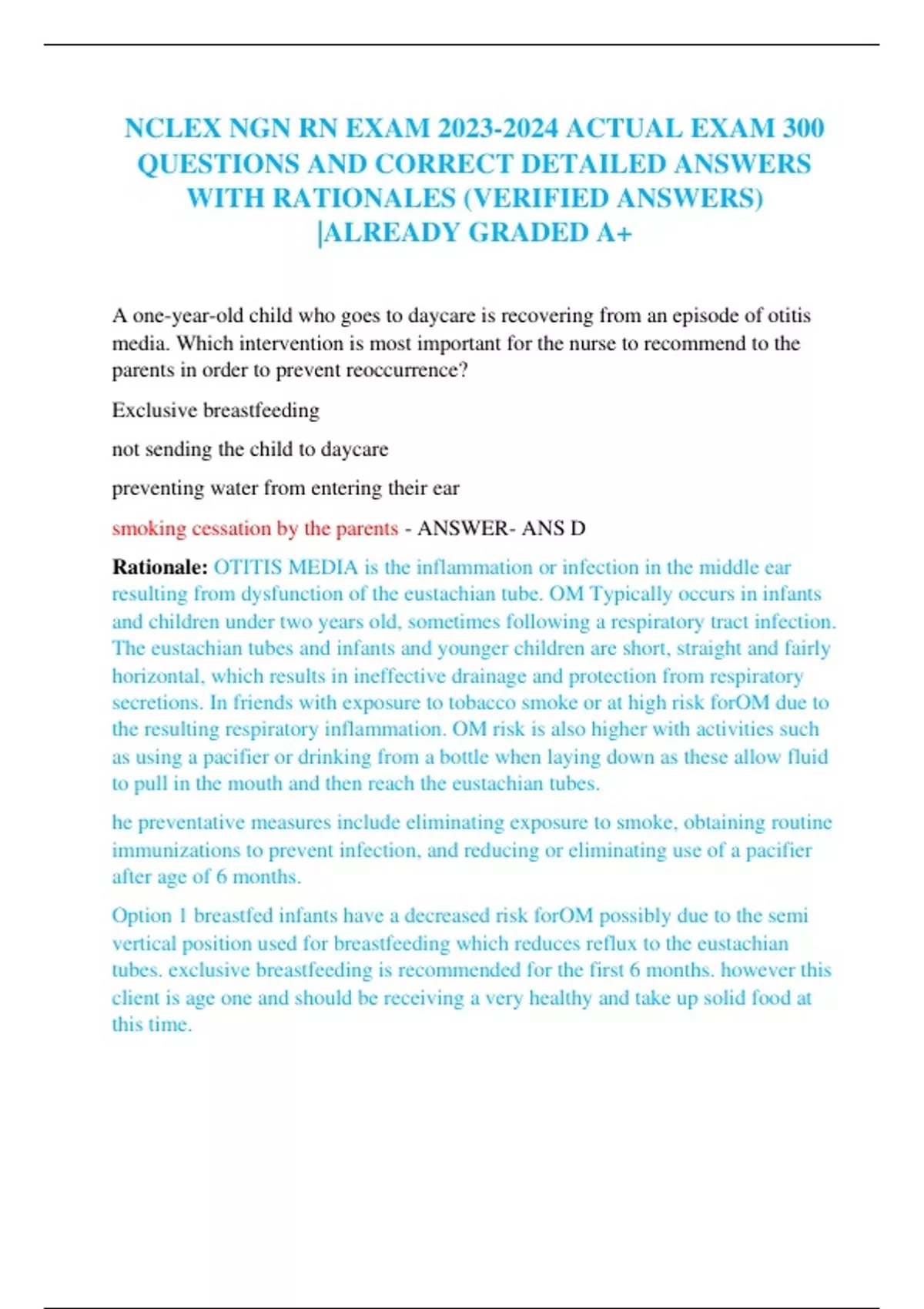 NCLEX NGN RN EXAM ACTUAL EXAM 300 QUESTIONS AND CORRECT DETAILED ANSWERS WITH RATIONALES (VERIFIED ANSWERS) |ALREADY GRADED A+