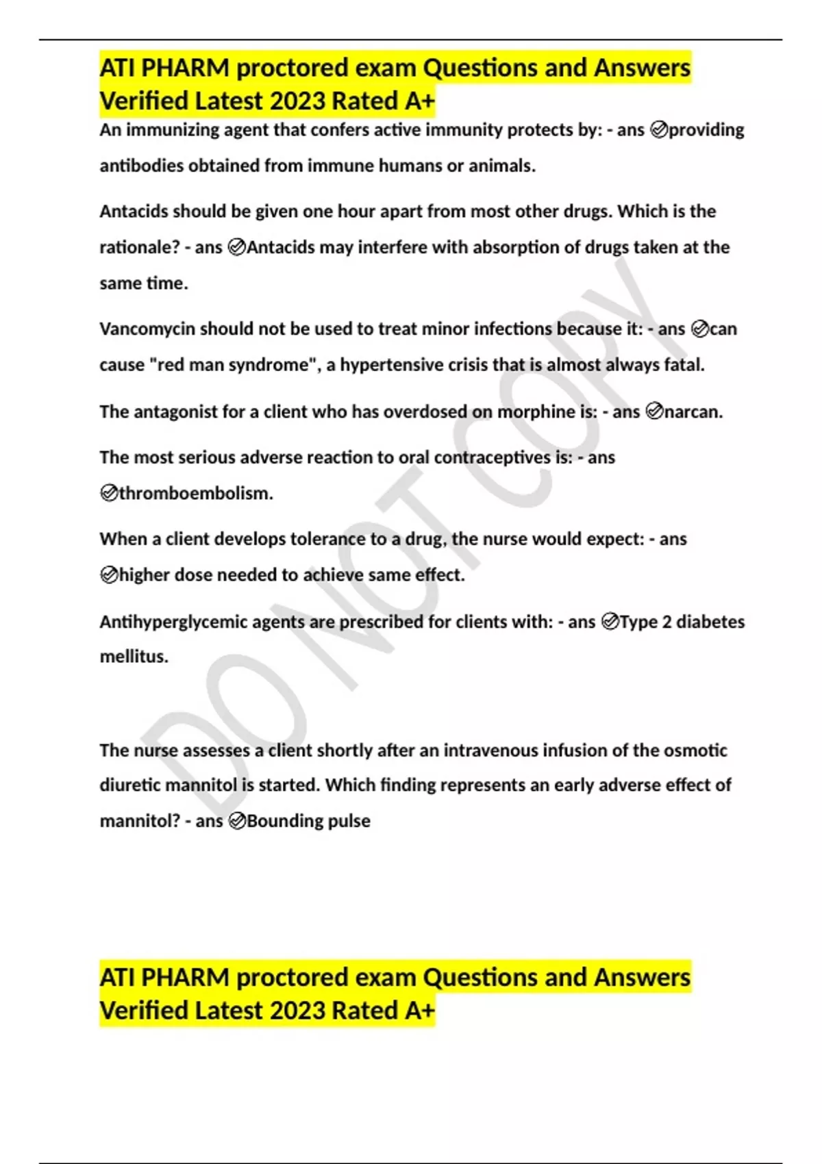 ATI PHARM proctored exam Questions and Answers Verified Latest 2023 Rated A+