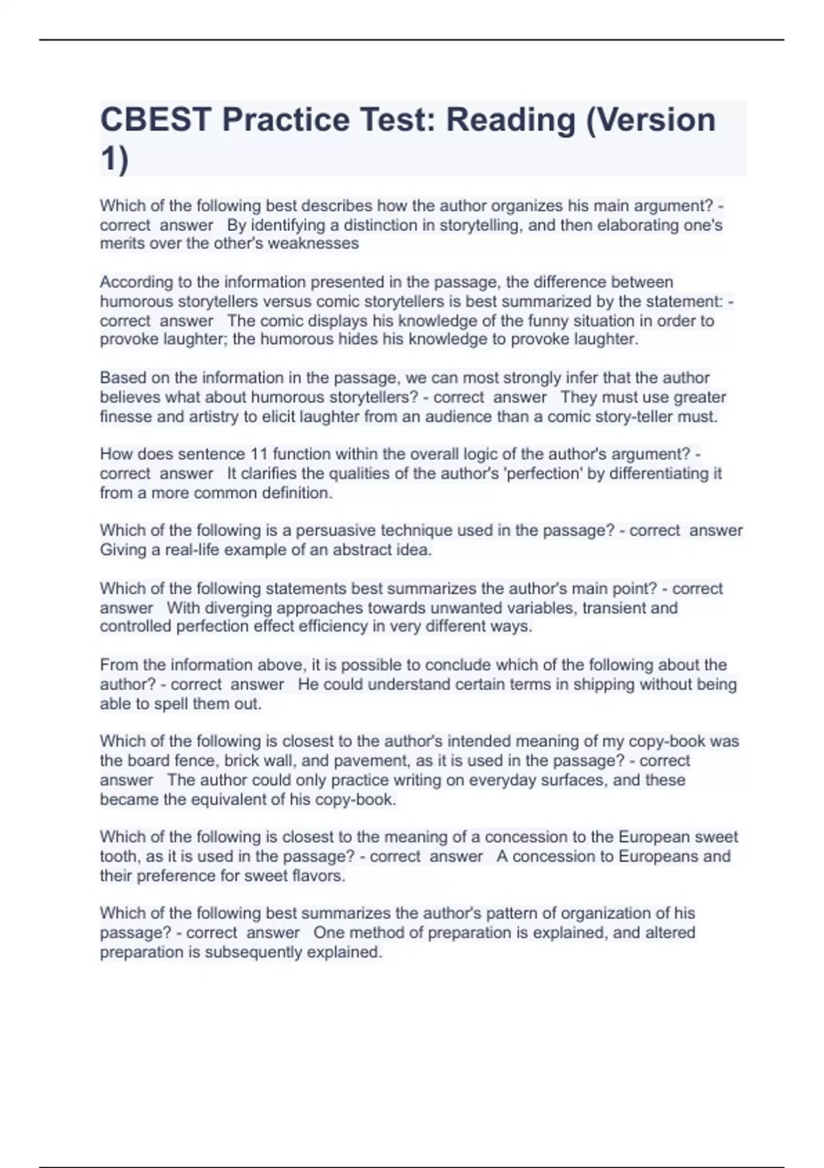 cbest practice test question and answers 100 corr