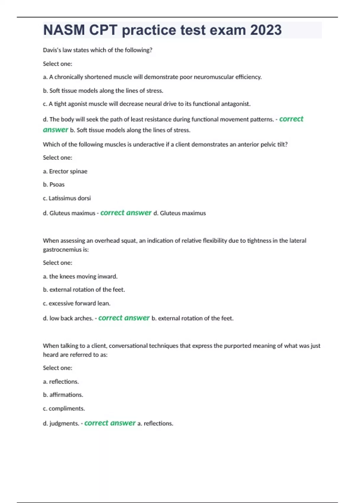 nasm cpt practice test exam 2023docx