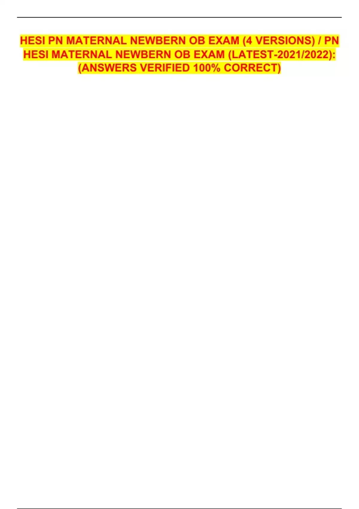 HESI PN MATERNAL NEWBERN OB EXAM (4 VERSIONS) / PN HESI MATERNAL NEWBERN OB EXAM (LATEST-2021/2022): (ANSWERS VERIFIED 100% CORRECT)