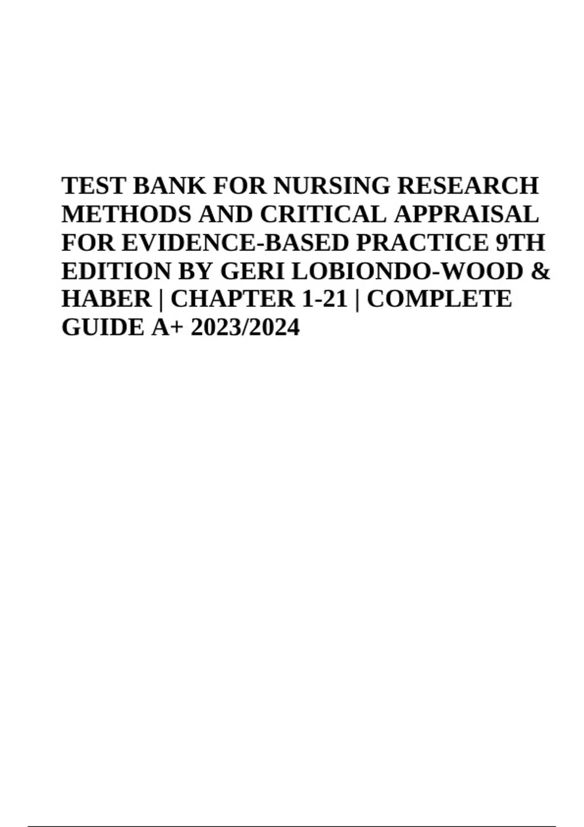 ,TEST BANK FOR NURSING RESEARCH METHODS AND CRITICAL APPRAISAL FOR EVIDENCE-