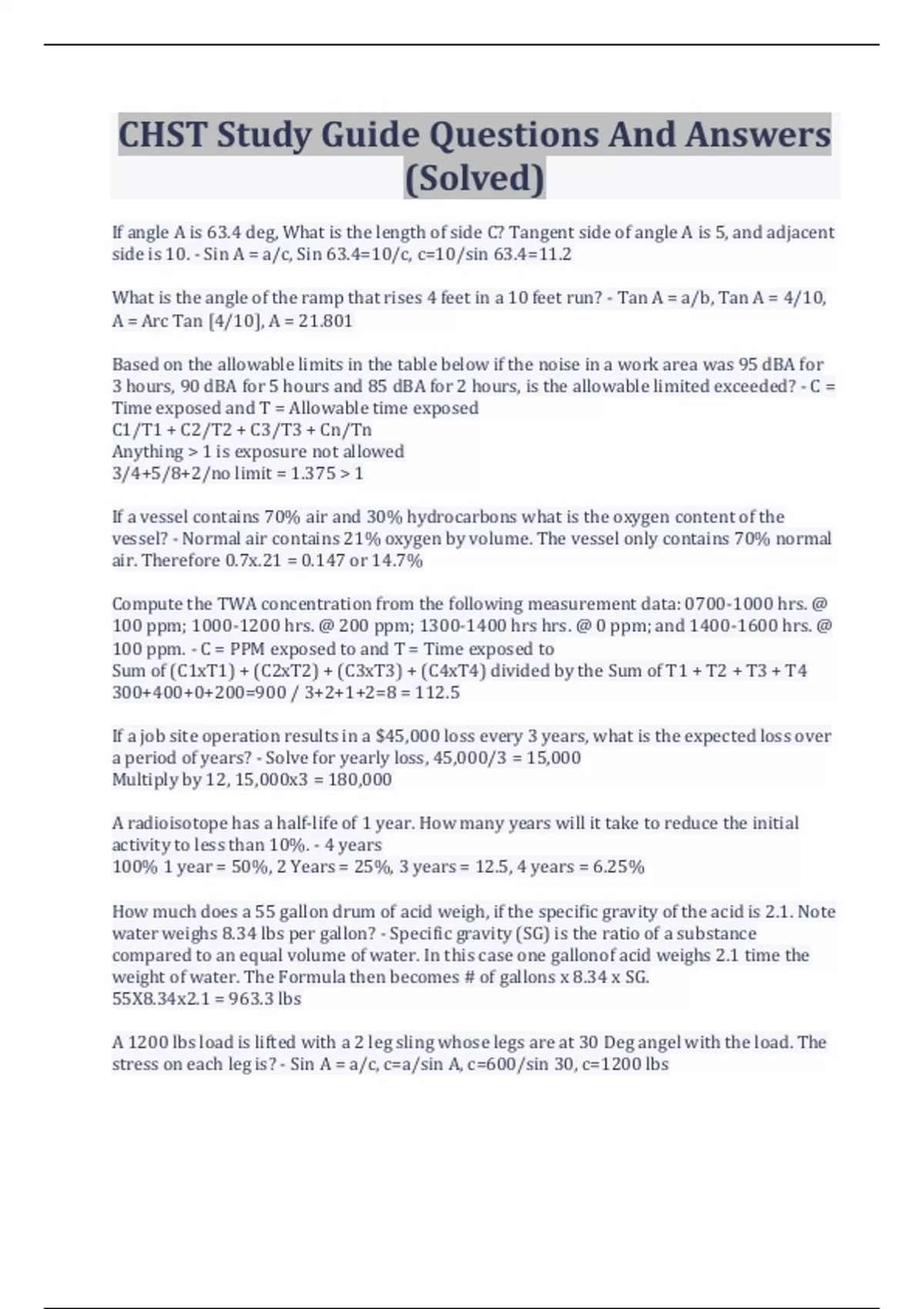 CHST Study Guide Questions And Answers (Solved)