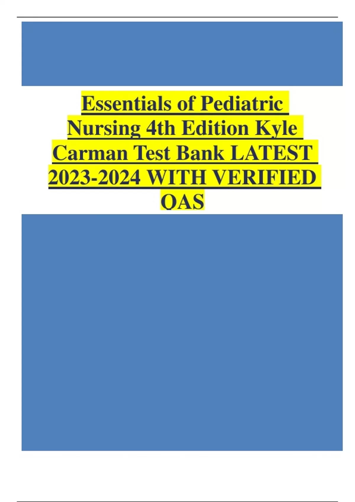 Essentials of Pediatric Nursing 4th Edition Kyle Carman Test Bank