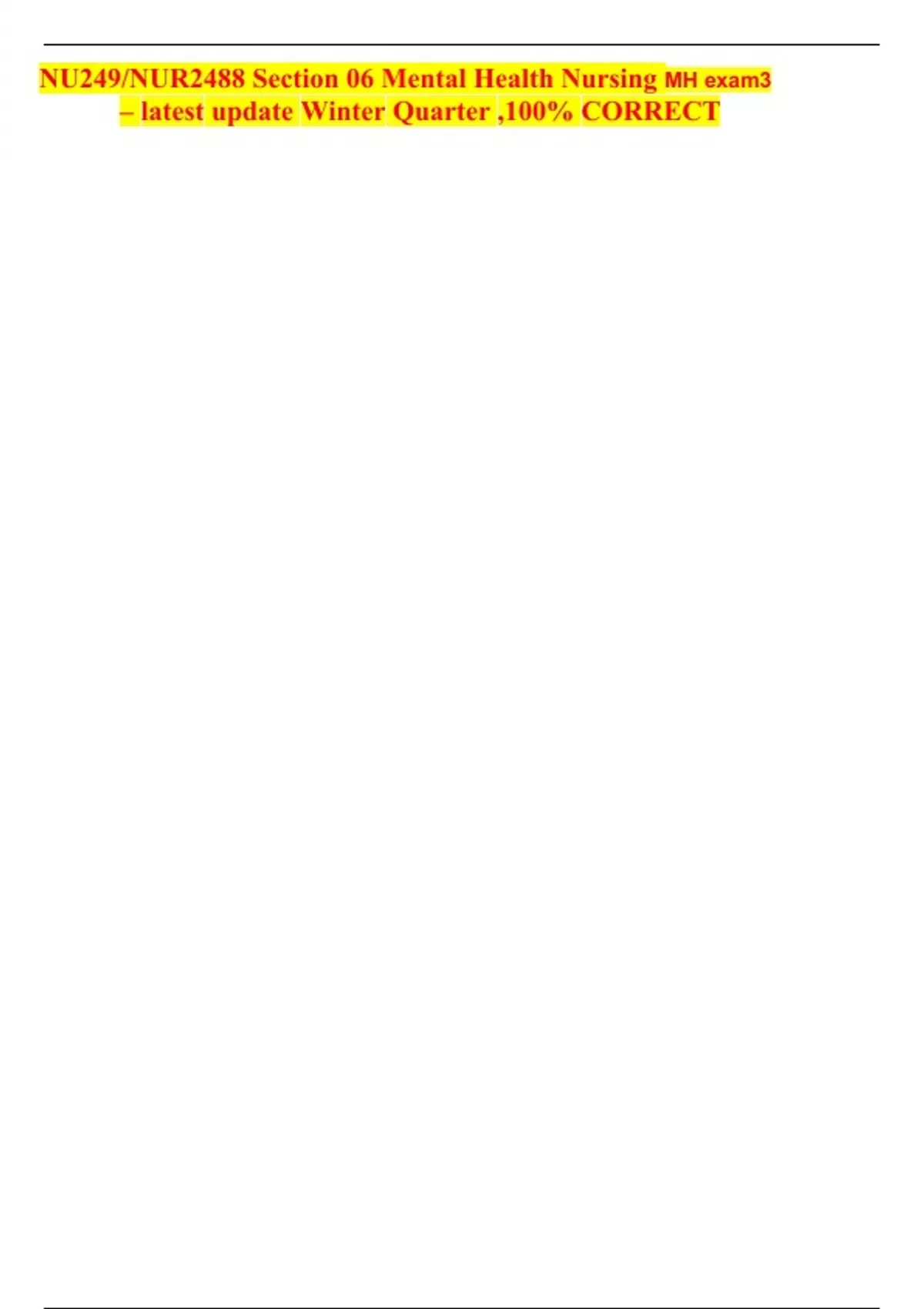 NU249/NUR2488 Section 06 Mental Health Nursing MH exam3 – latest update Winter Quarter ,100% CORRECT