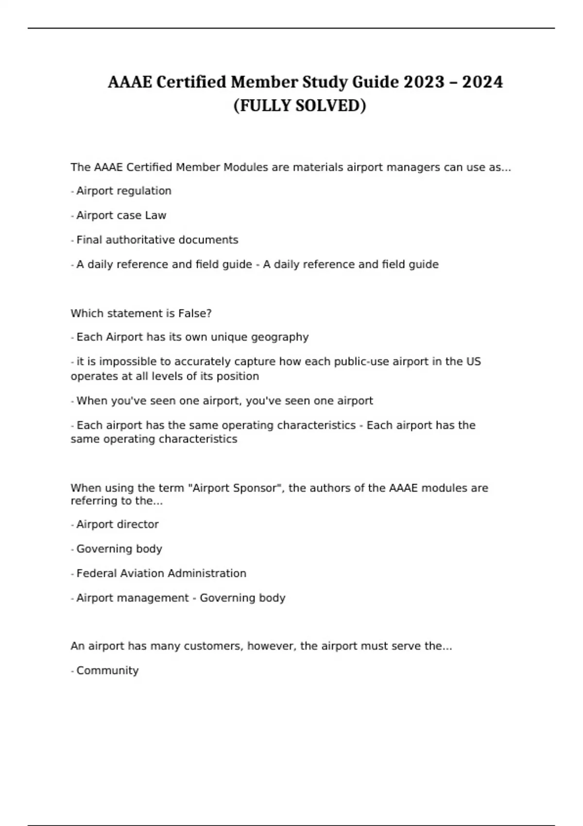 AAAE Certified Member Study Guide 2023 – 2024 (FULLY SOLVED)