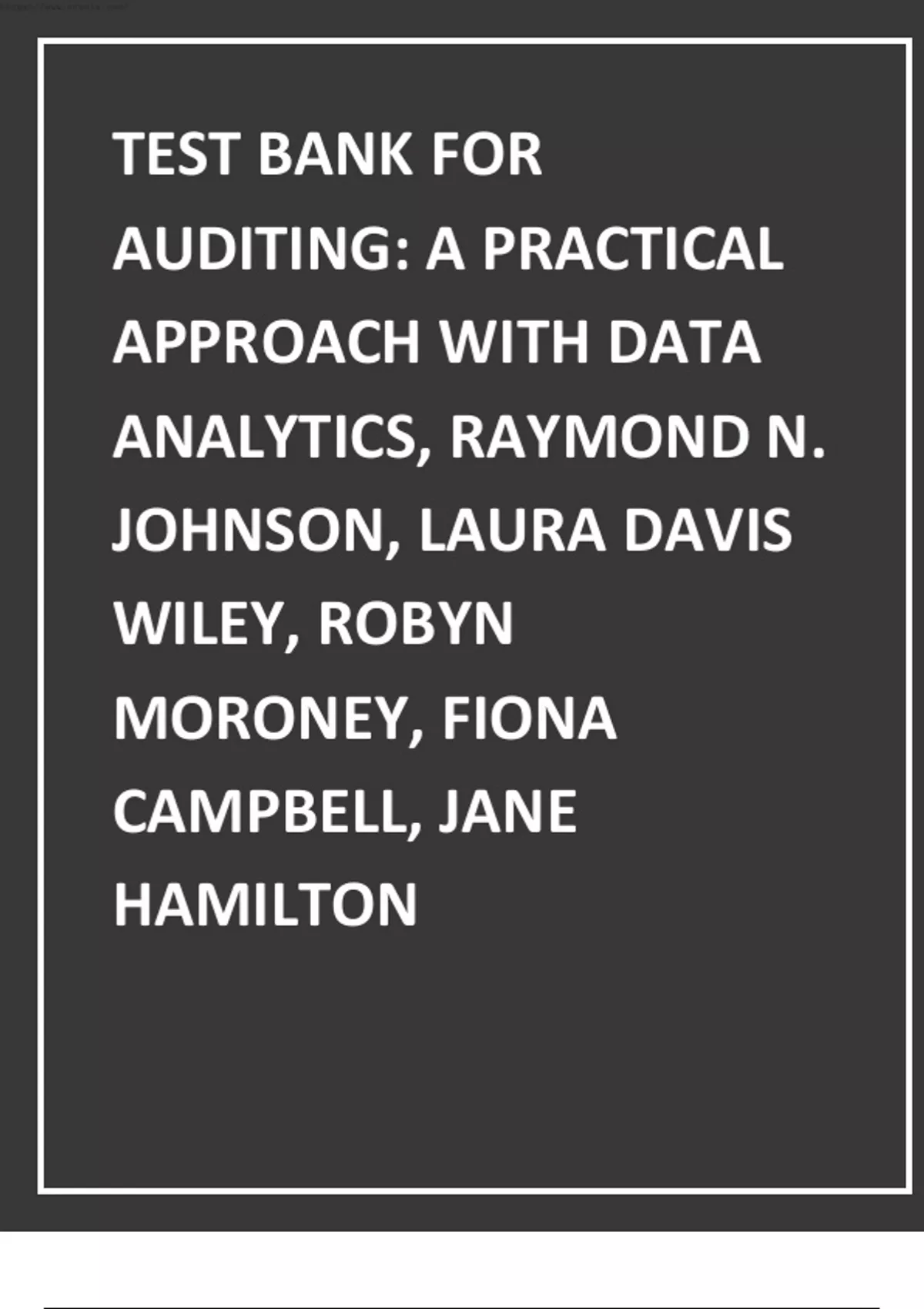 Test Bank For Auditing A Practical Approach With Data Analytics, Raymond N. Johnson, Laura Davis Wiley, Robyn Moroney, Fiona Campbell, Jane Hamilton.
