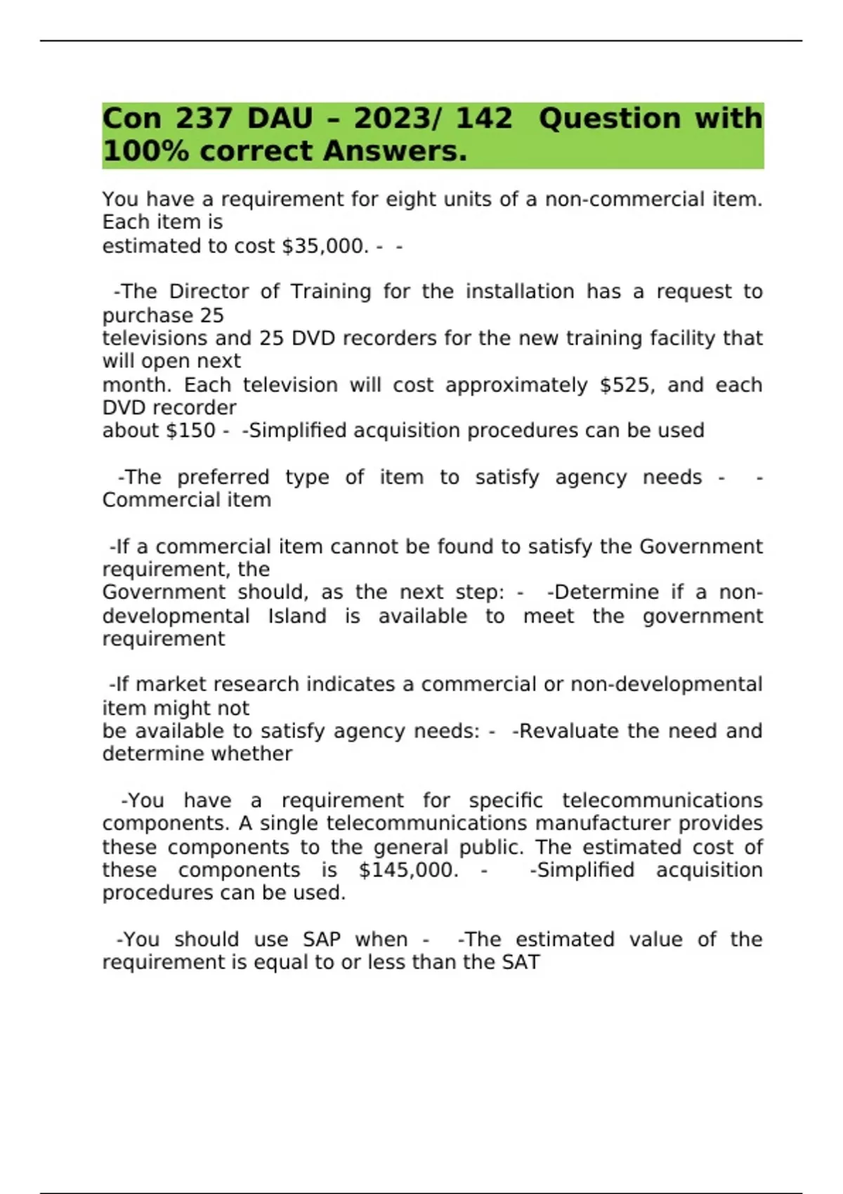 Con 237 DAU – 2023/ 142 Question with 100% correct Answers.