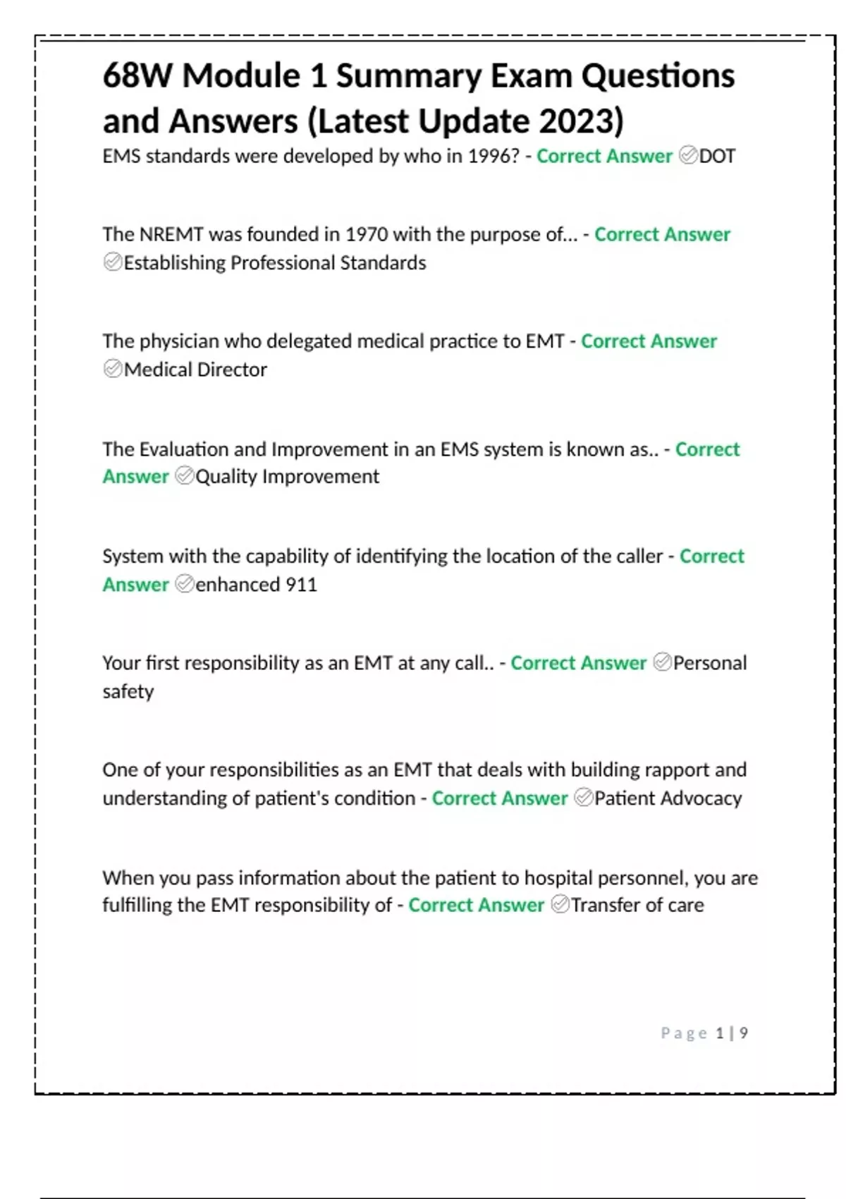 68W Module 1 Summary Exam Questions and Answers (Latest Update 2023)