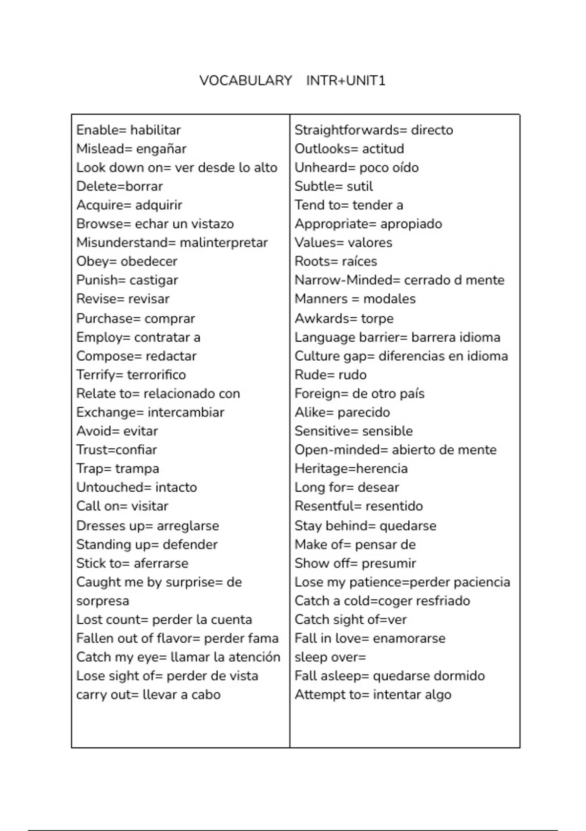 VOCABULARY INTR+UNIT1