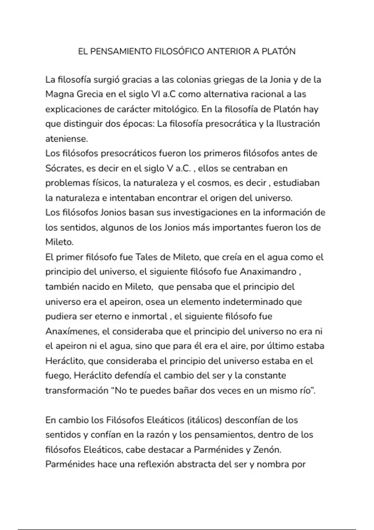 EL PENSAMIENTO FILOSÓFICO ANTERIOR A PLATÓN