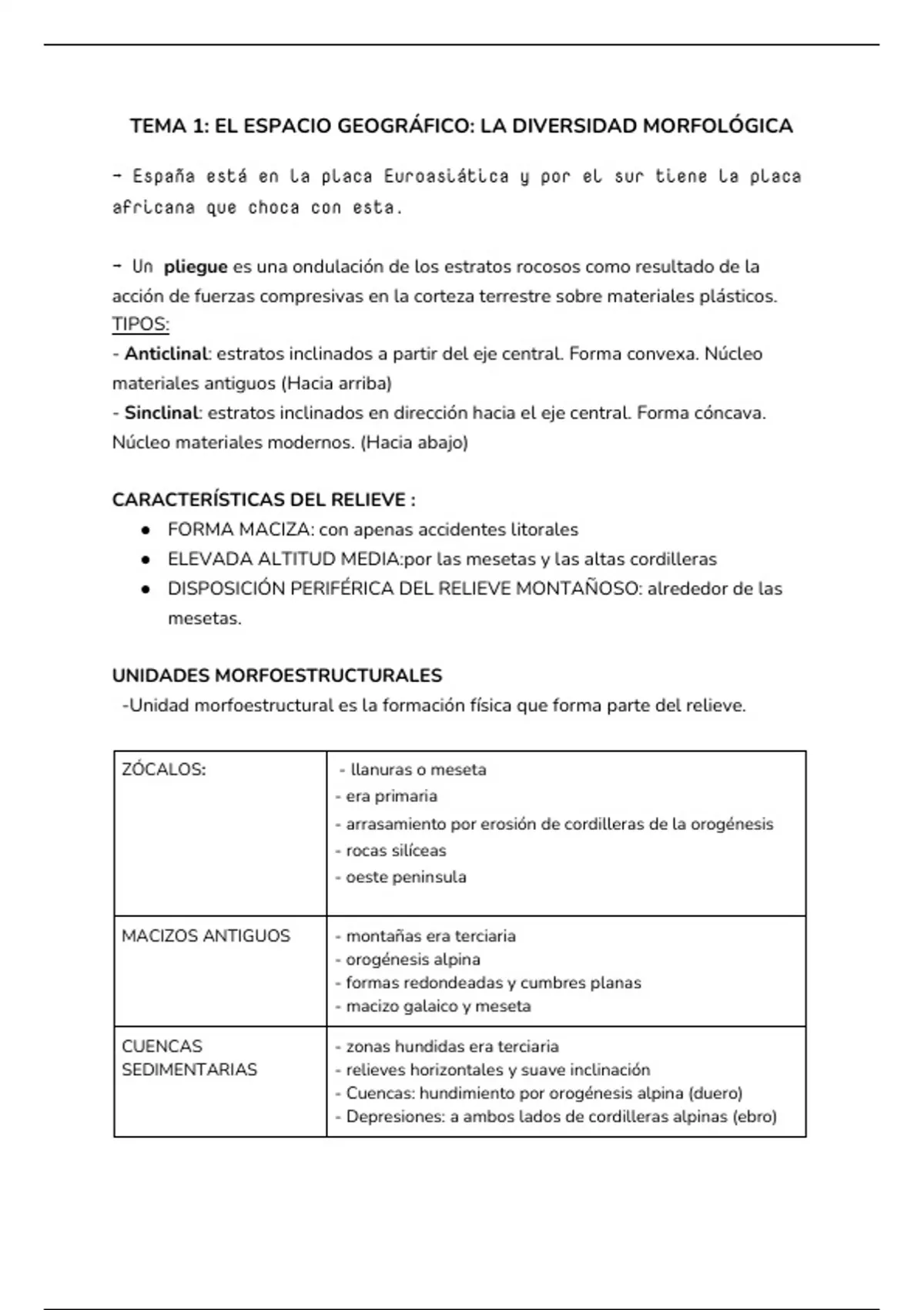 Sumario GEO TEMA1 ESPACIO GREOGRAFICO, DIVERSIDAD MORFOLOGICA
