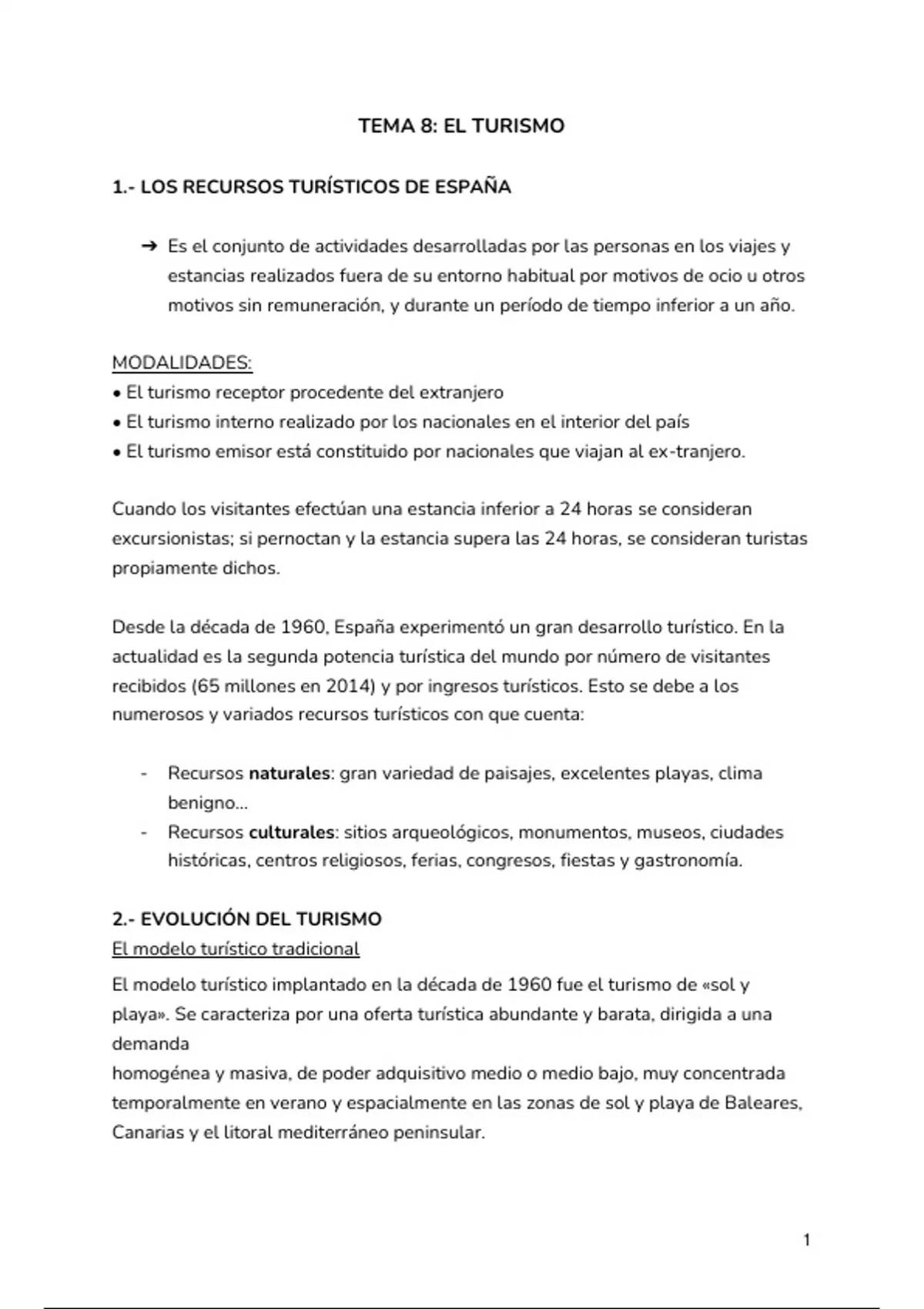 1.- LOS RECURSOS TURÍSTICOS DE ESPAÑA
