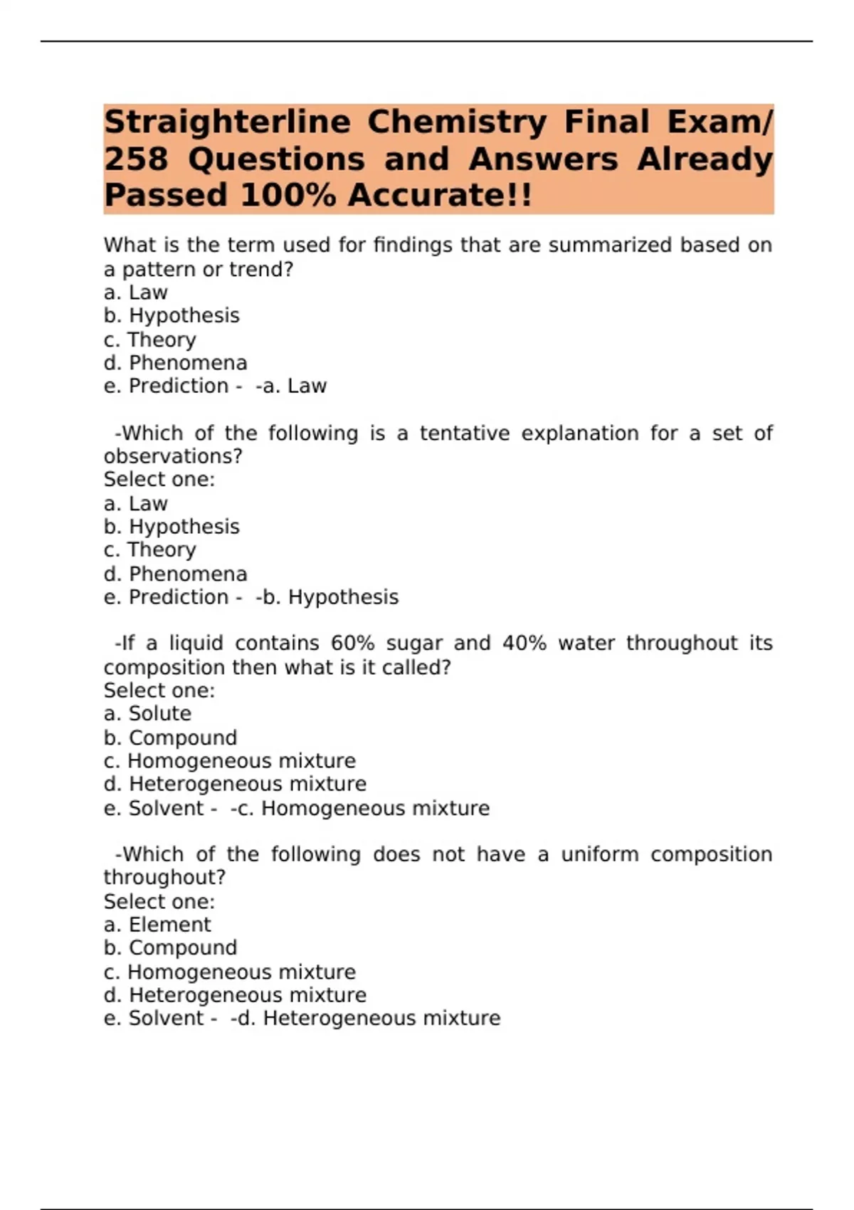 Straighterline Chemistry Final Exam/ 258 Questions and Answers Already Passed 100% Accurate!!
