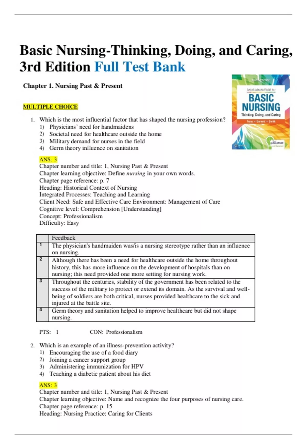 Basic Nursing-Thinking, Doing, and Caring, 3rd Edition Test Bank | All Chapters