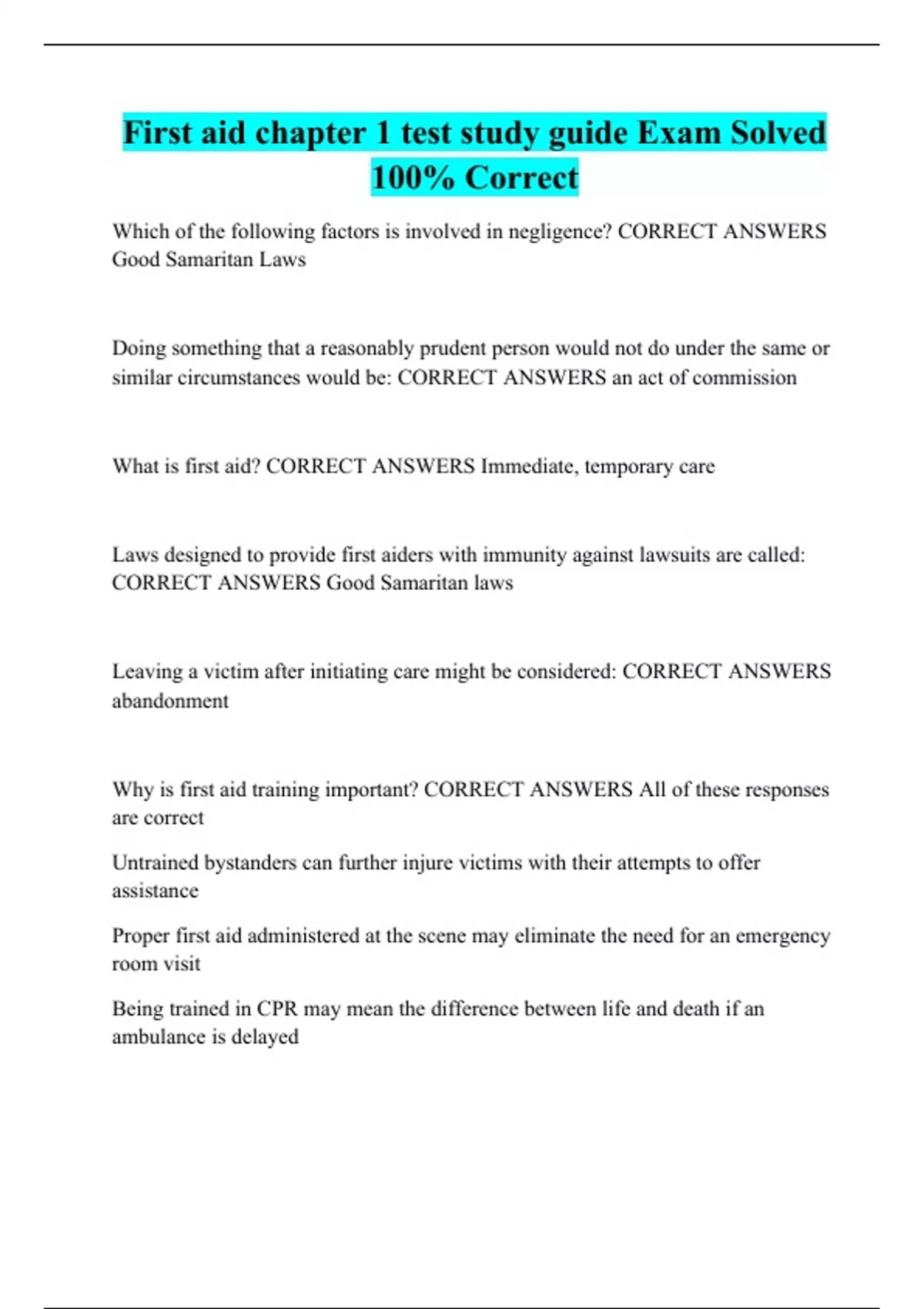 first aid chapter 1 test study guide exam solved 1