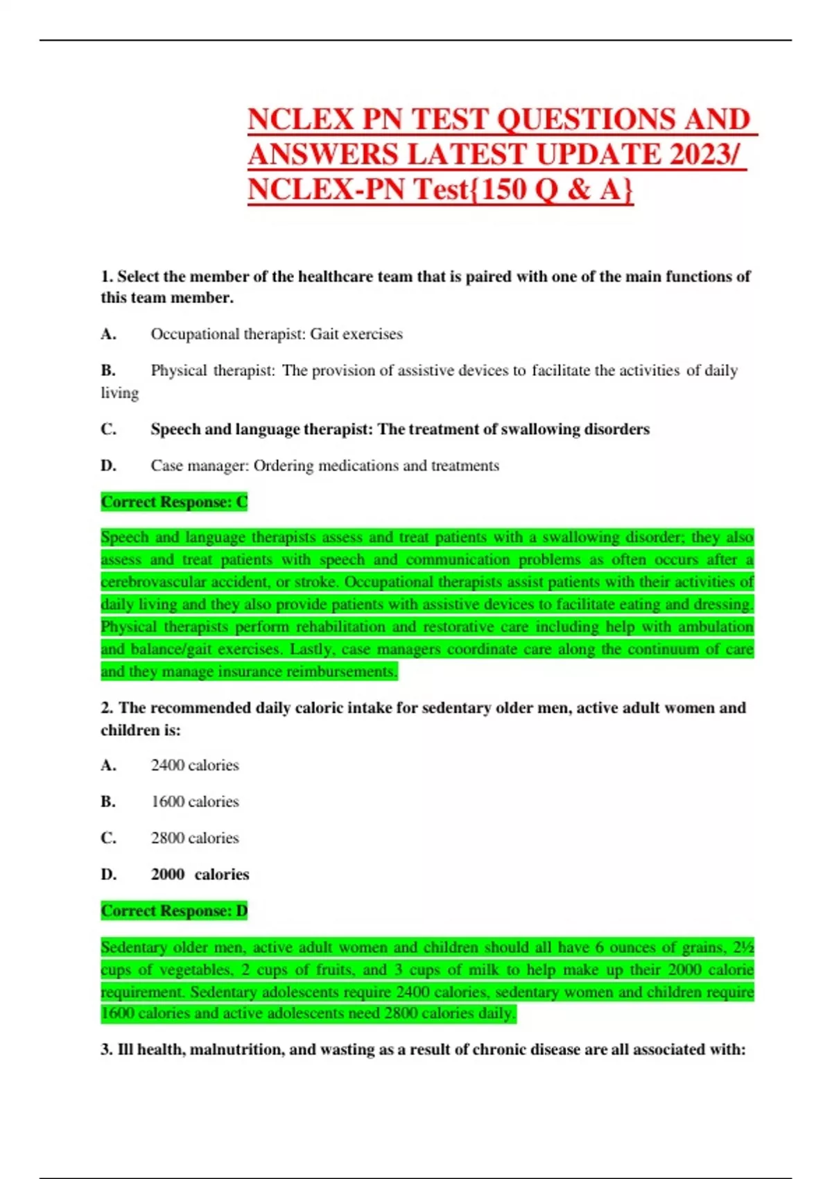 NCLEX PN TEST QUESTIONS AND ANSWERS LATEST UPDATE 2023/ NCLEX-PN Test{150 Q & A}