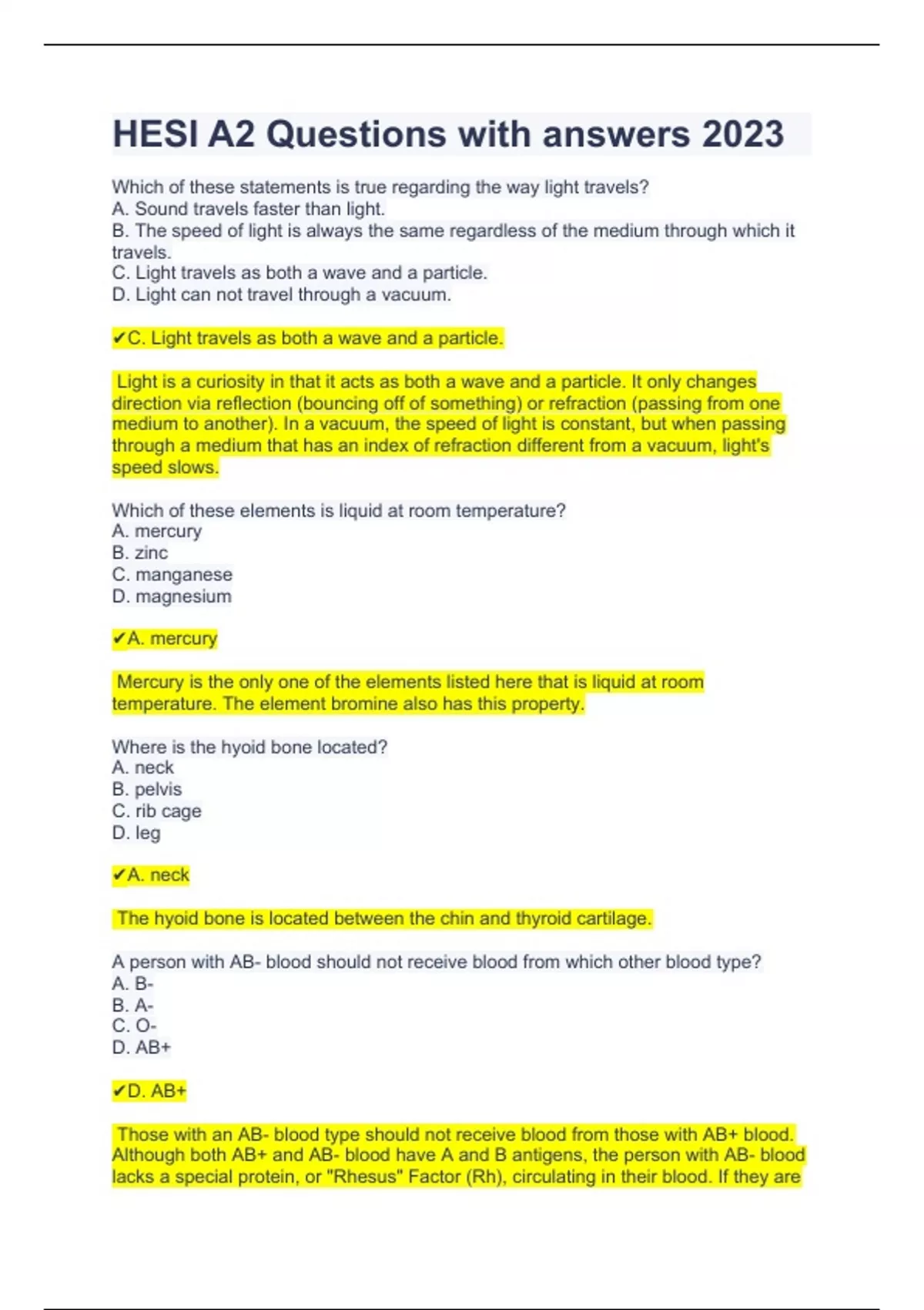 HESI A2 Questions with answers 2023