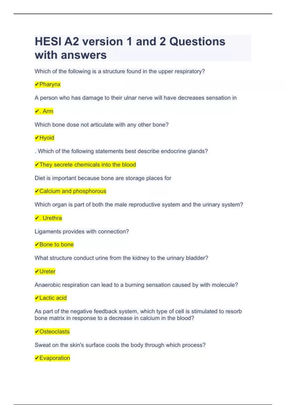 HESI A2 version 1 and 2 Questions with answers