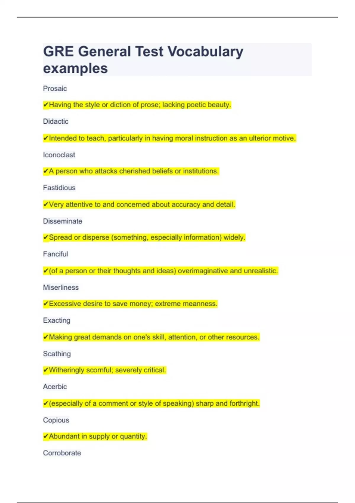 GRE General Test Vocabulary examples