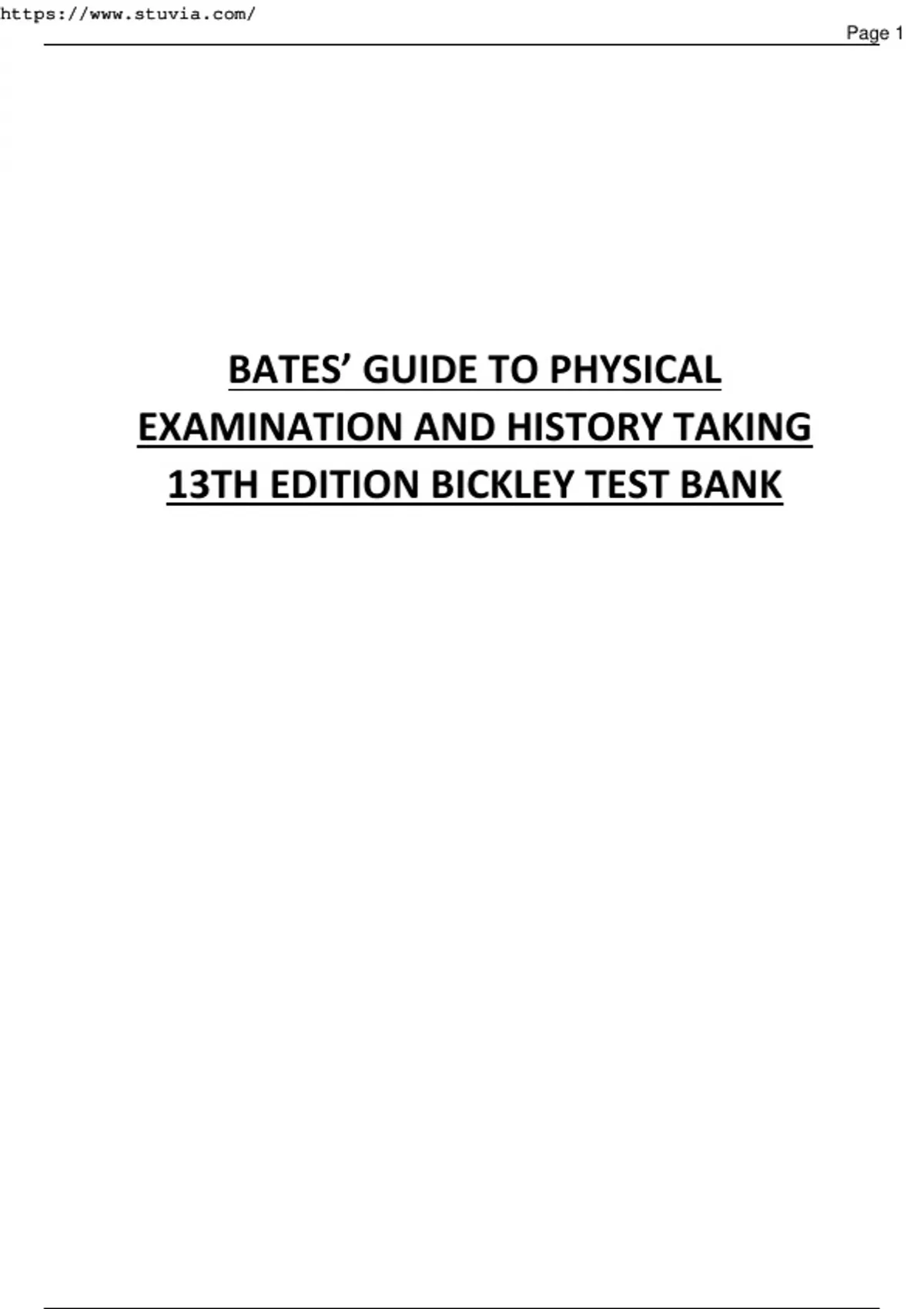 Bates’ Guide to Physical Examination and History Taking 13th Edition Bickley Test Bank.